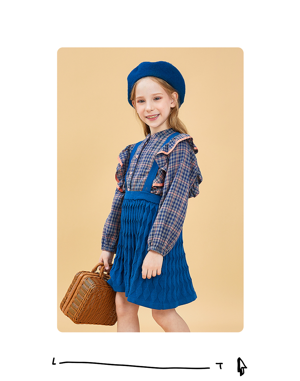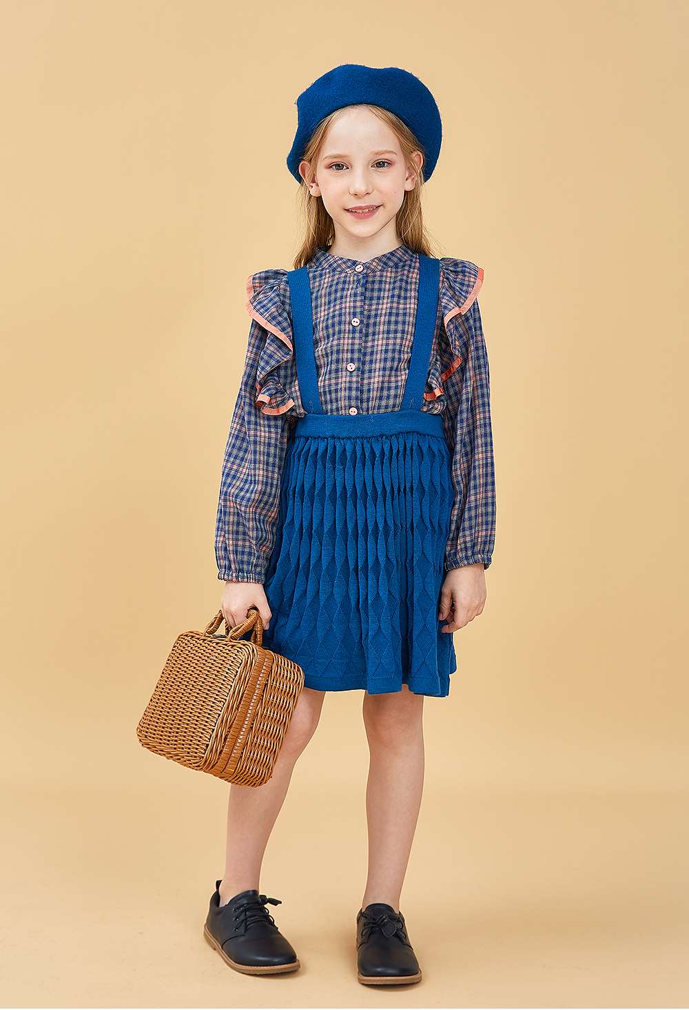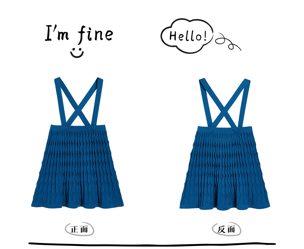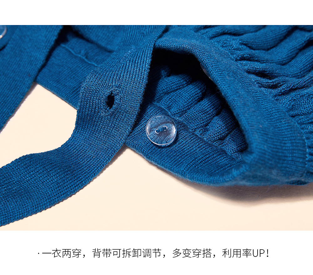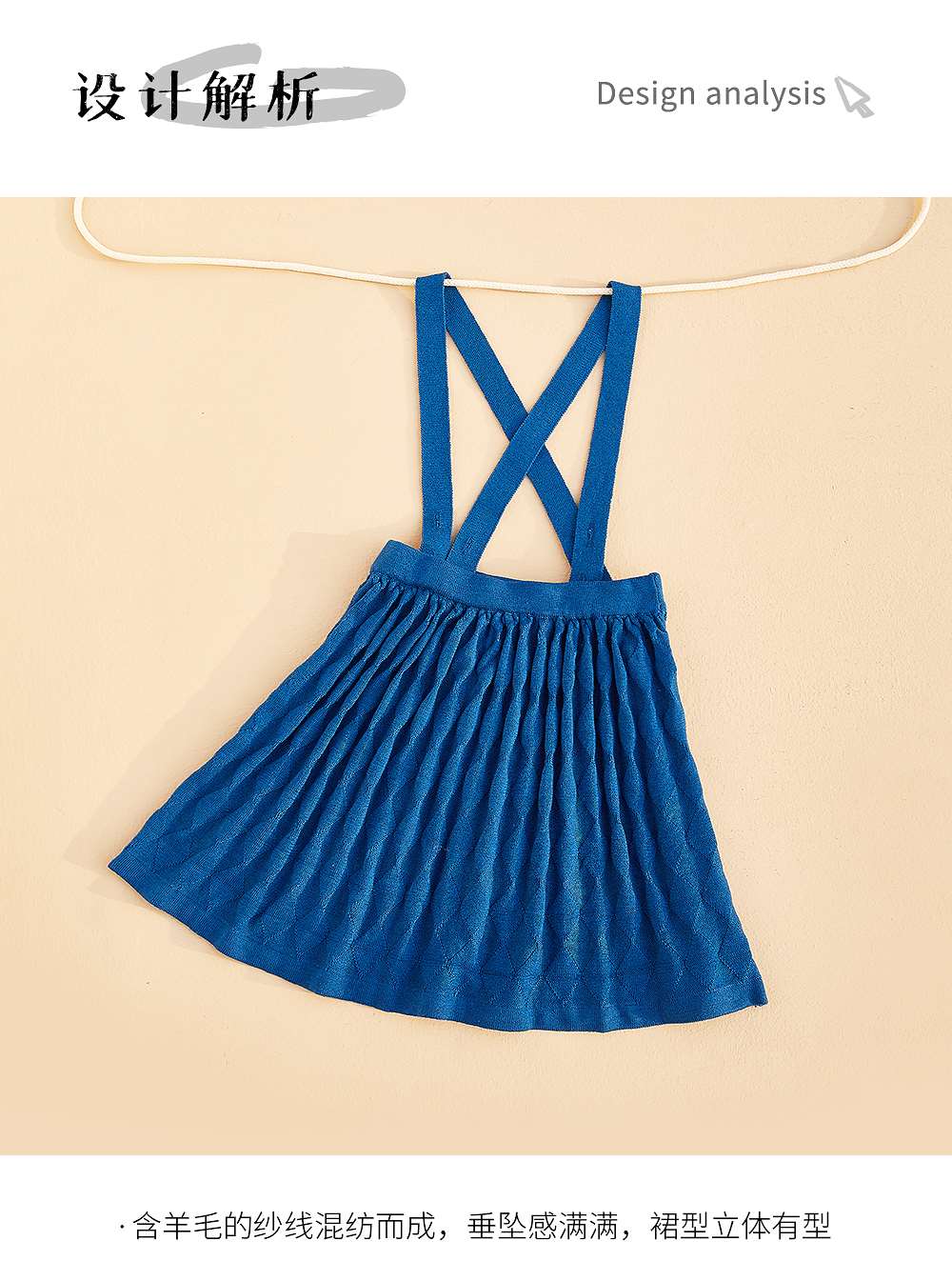 littletime童装孔雀蓝短裙 2021春装新款针织百褶复古背带裙两穿