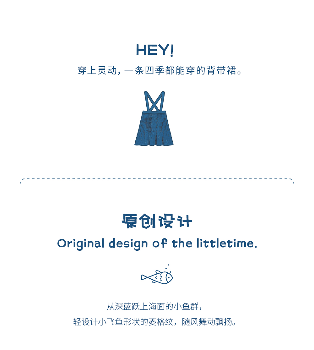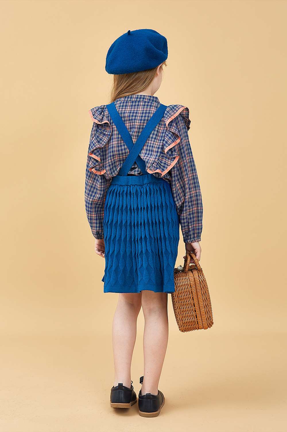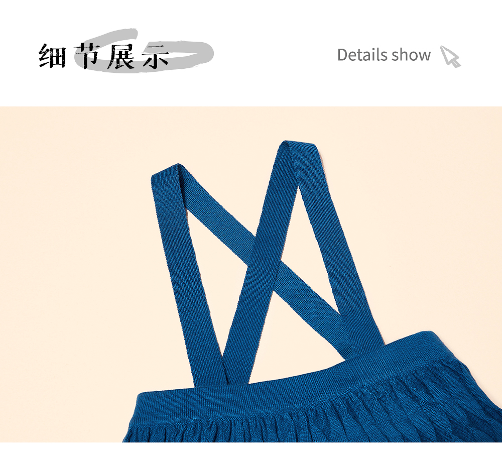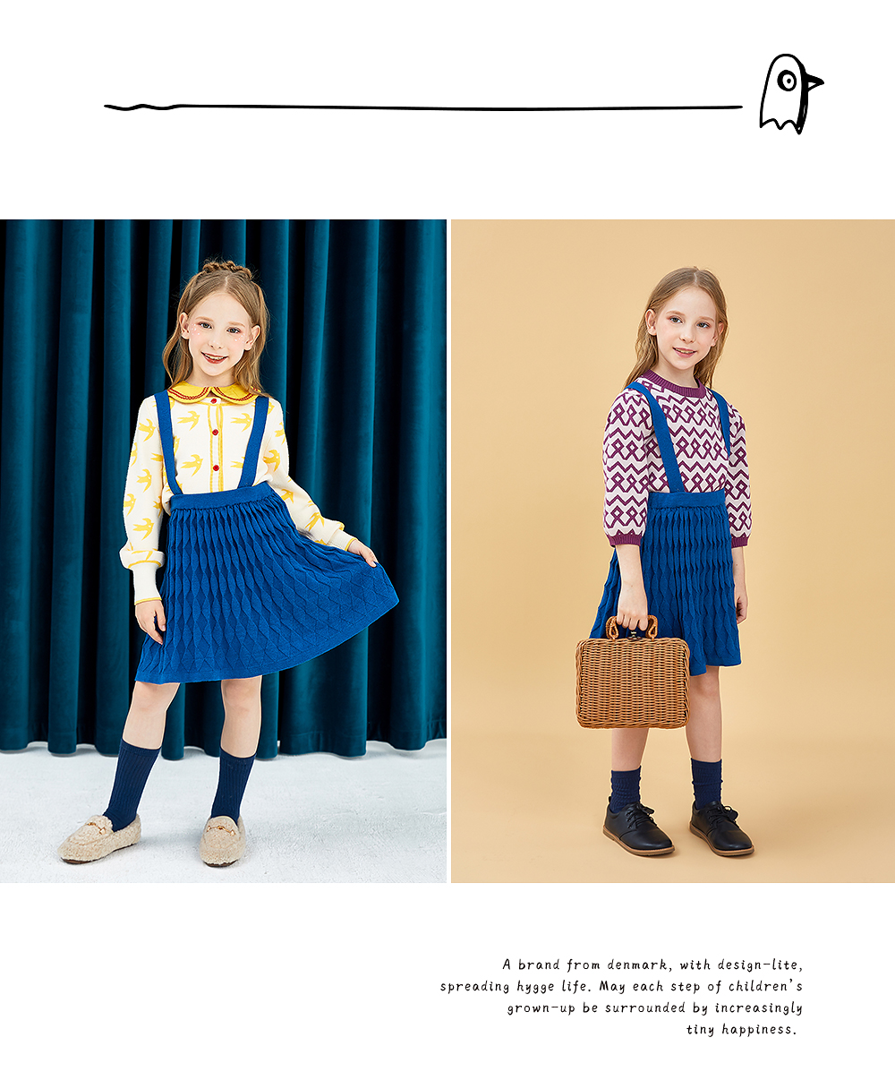 littletime童装孔雀蓝短裙 2021春装新款针织百褶复古背带裙两穿