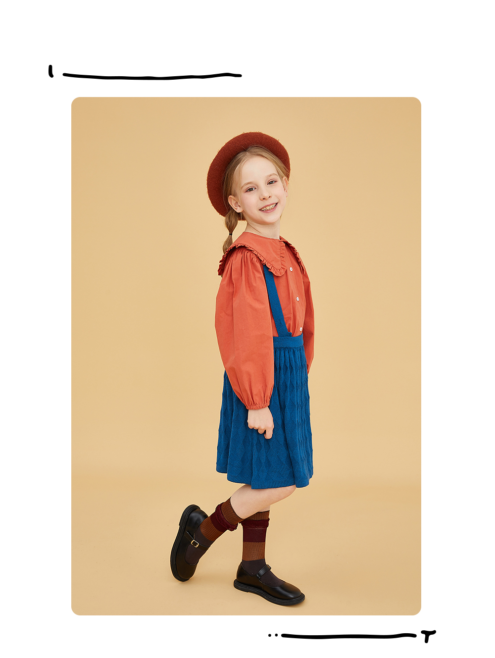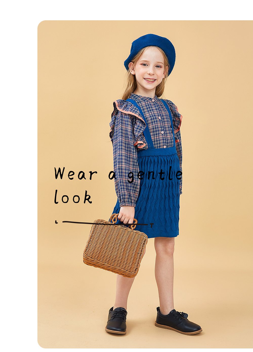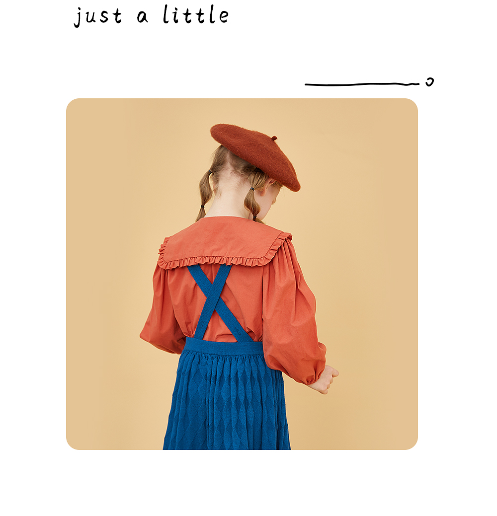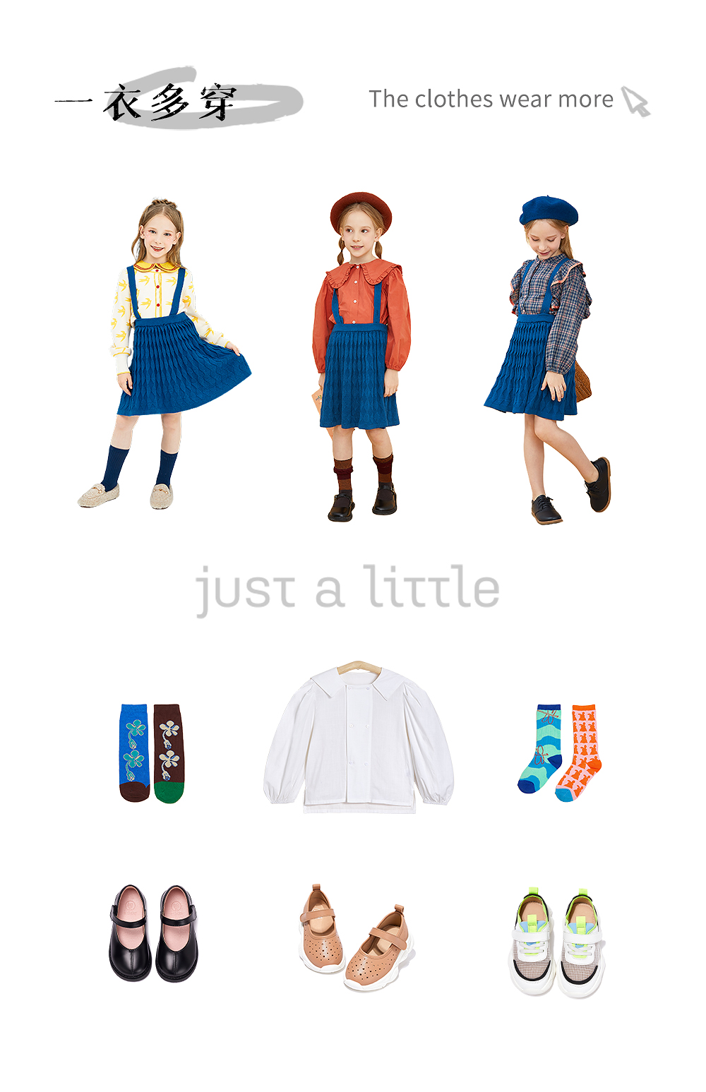 littletime童装孔雀蓝短裙 2021春装新款针织百褶复古背带裙两穿