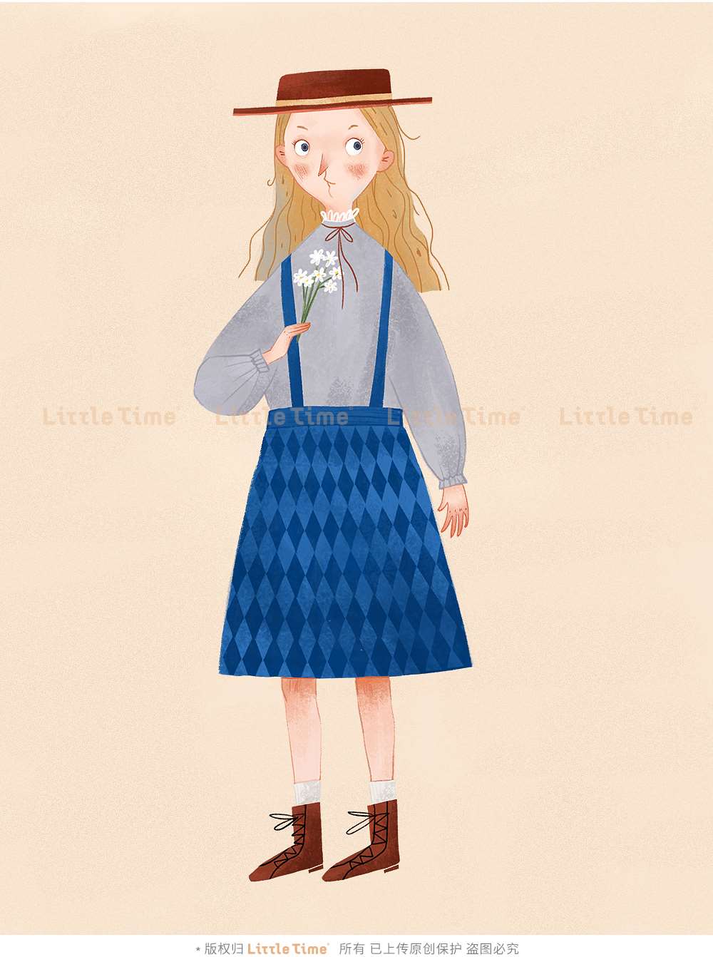 littletime女童阔腿牛仔裤春秋宽松长裤2024新款印花儿童直筒裤子