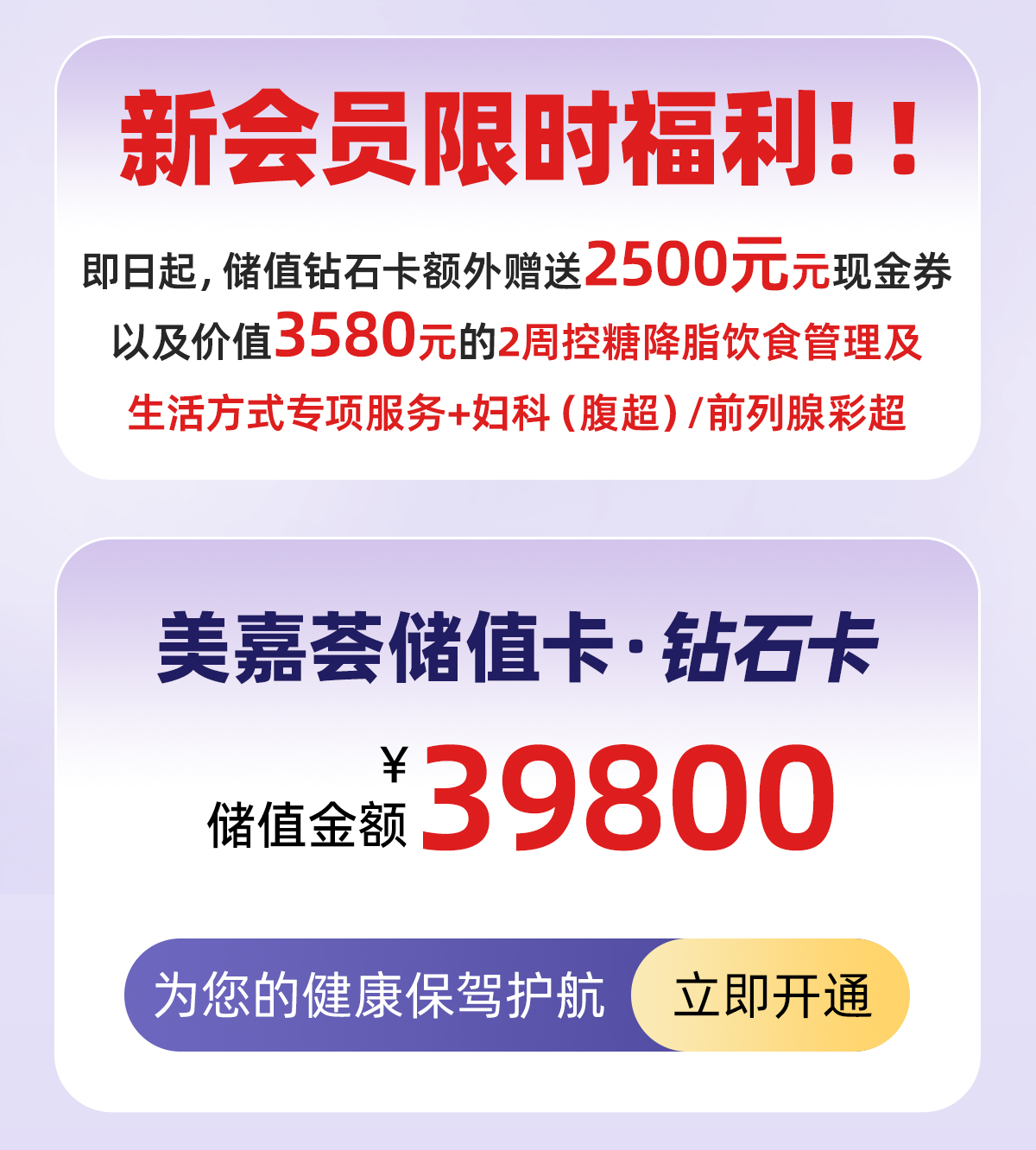欢迎来到美嘉大健康商城!我们致力于为每一位顾客提供专业、全面、个性化的健康管理服务与营养健康产品。我们的会员卡为您提供了多项独特权益,帮助您更好地关注和改善自己的健康状况。