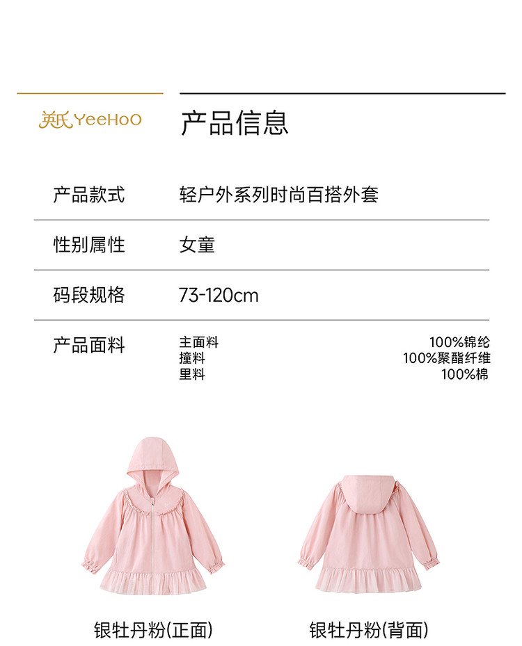 英氏女宝宝防晒衣UPF50+春秋新款女童透气皮肤衣外套YRWVJ1S035A
