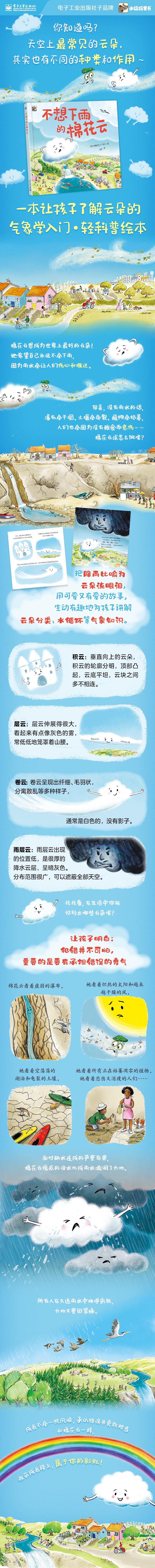 棉花云想成为世界上优选的云朵!她希望自己永远不会下雨,因为雨会让人们伤心。然而,无尽的阳光照射让使湖水枯竭、植物凋零、土地龟裂。太阳和风告诉棉花云,现在是该下雨的时候了!但有点固执的棉花云想坚持自己理念。直到有一天,她看到了被酷暑折磨下疲惫的人们和动物,发现他们的生活会因为炎热干燥变得无比困难。棉花云的感到很悲伤,当她大声哭了起来,眼泪变成雨滴时,干涸的土地因此重新变得翠绿。所有的人在久违的雨中欢呼庆祝起来……