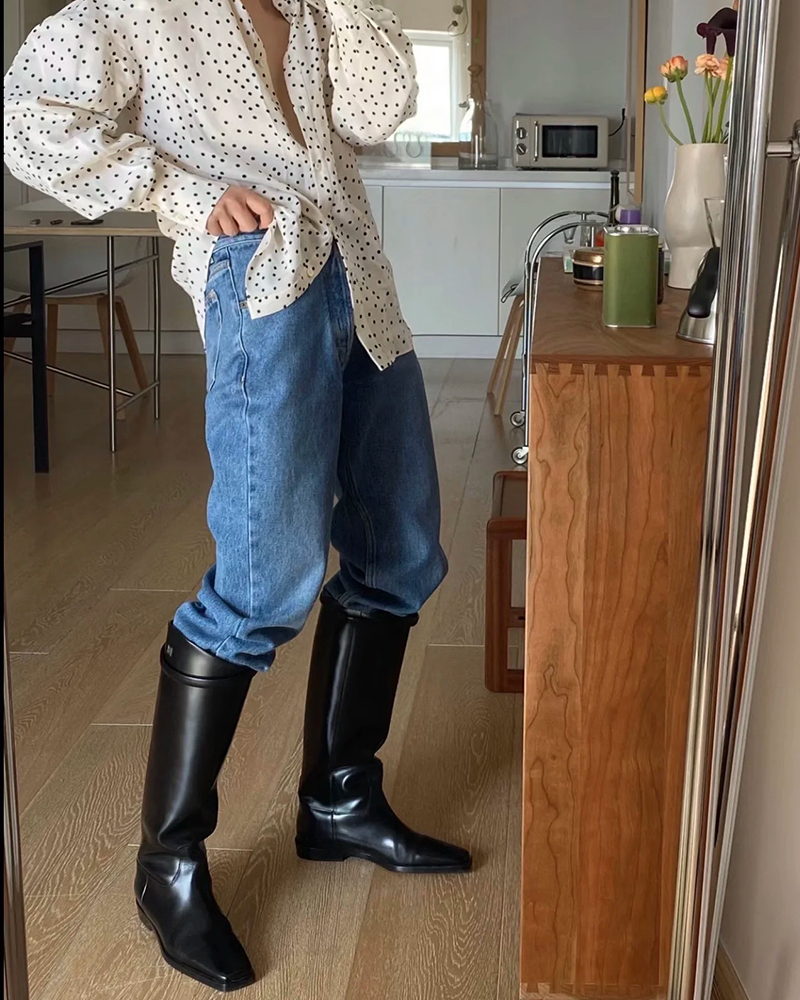 现货 THS-限时 TOT家 暗黑大女主方头长筒骑士靴 2色 BZ1213