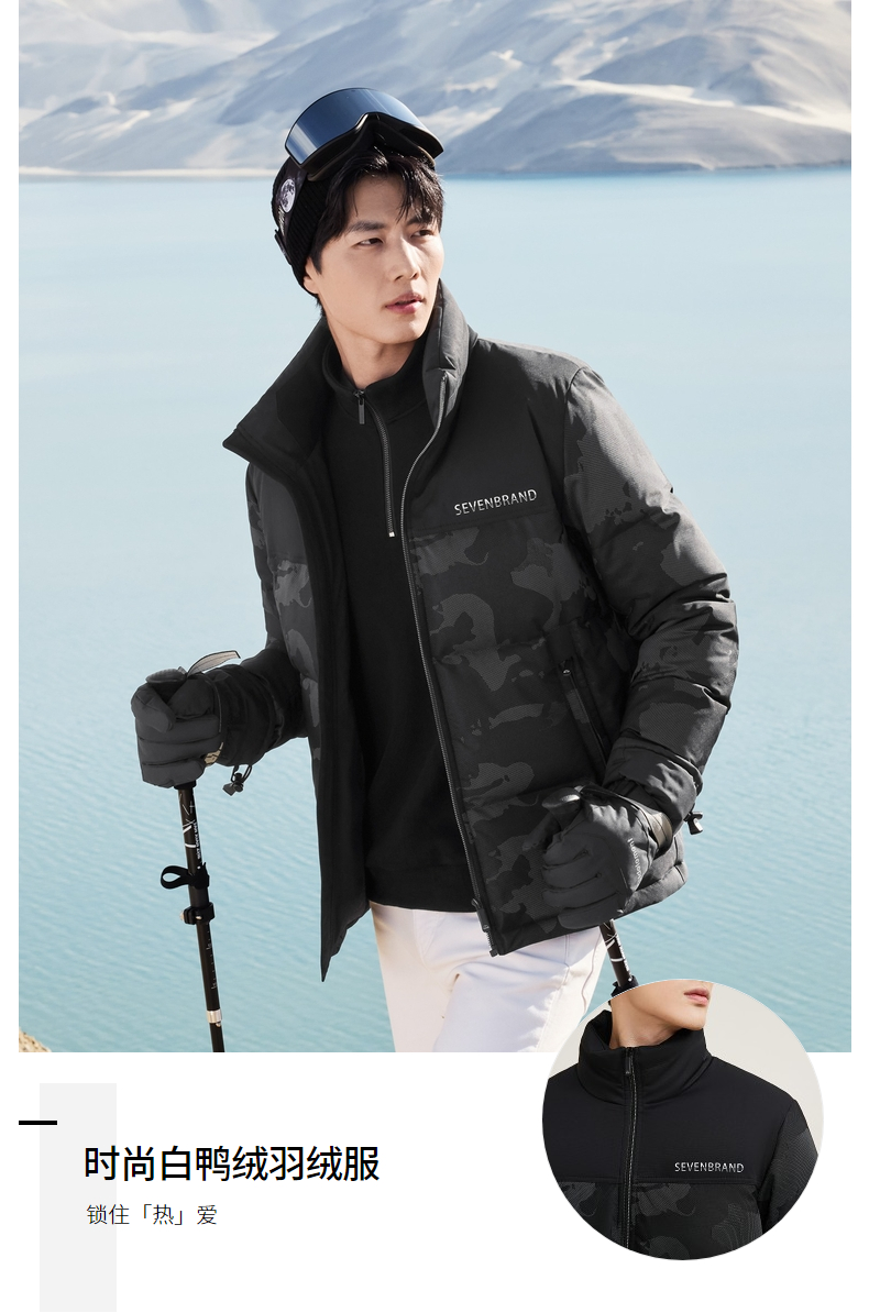 【黄金鲜羽绒】柒牌男冬季新品立领提羽绒服迷保暖白鸭绒外套129E70870