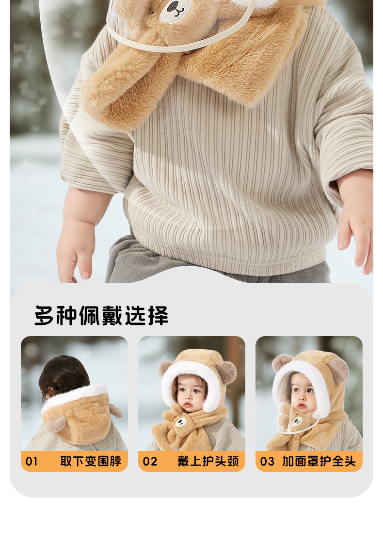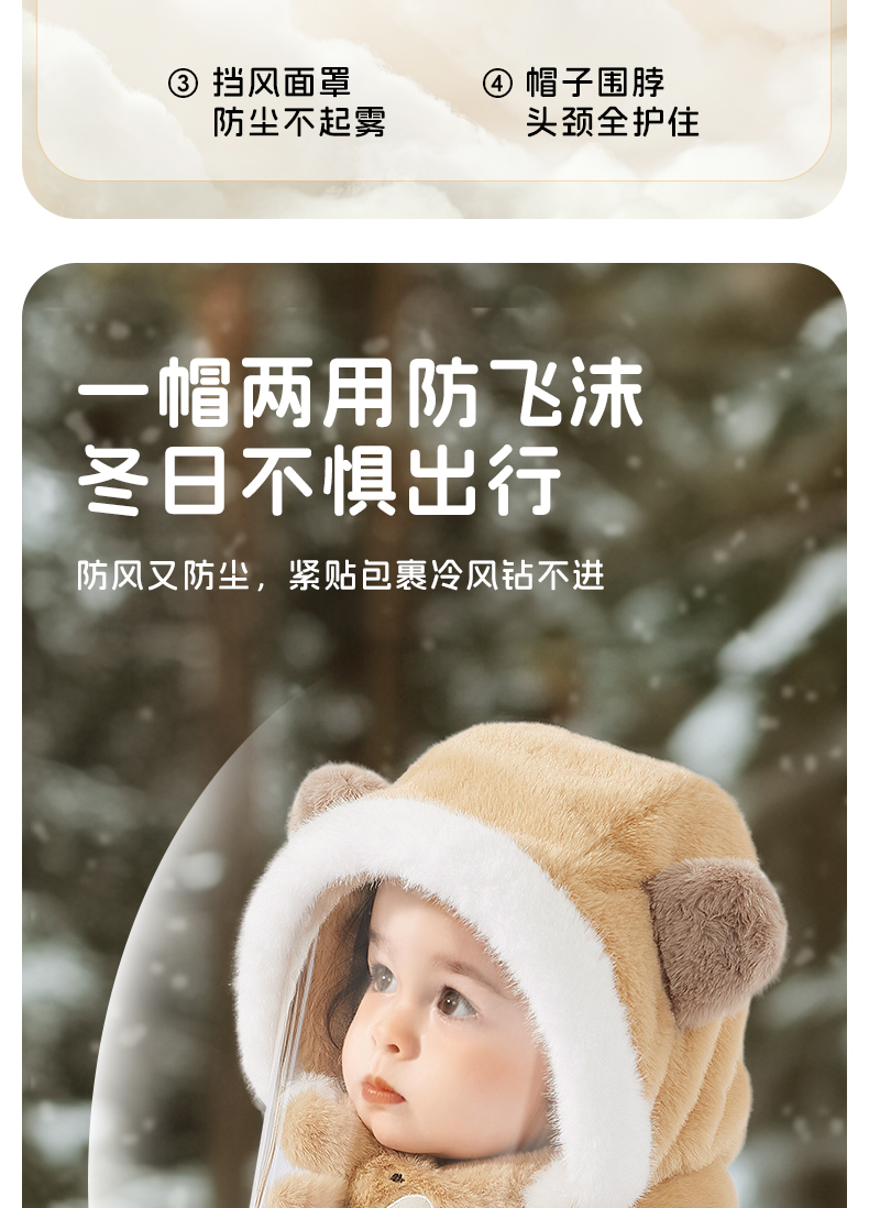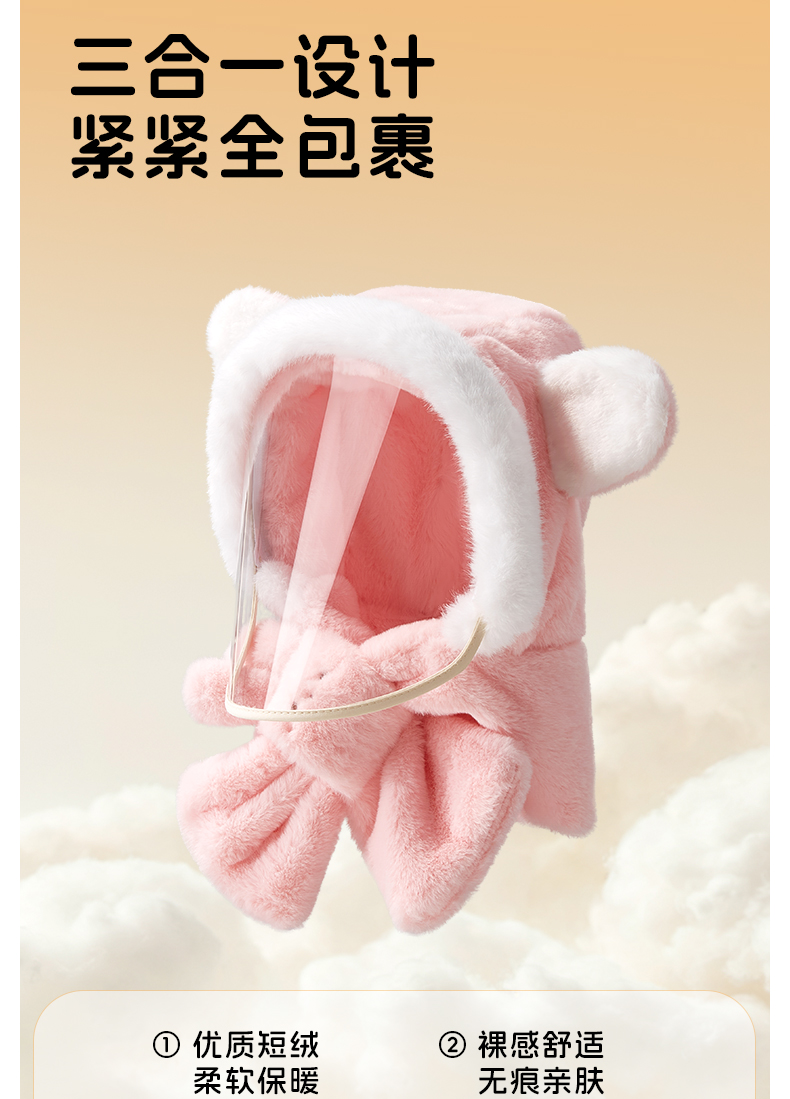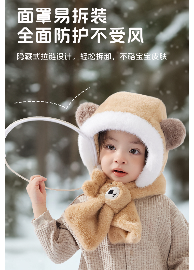 儿童帽子秋冬季防风面罩男女童户外骑行护耳套头帽宝宝围巾一体帽