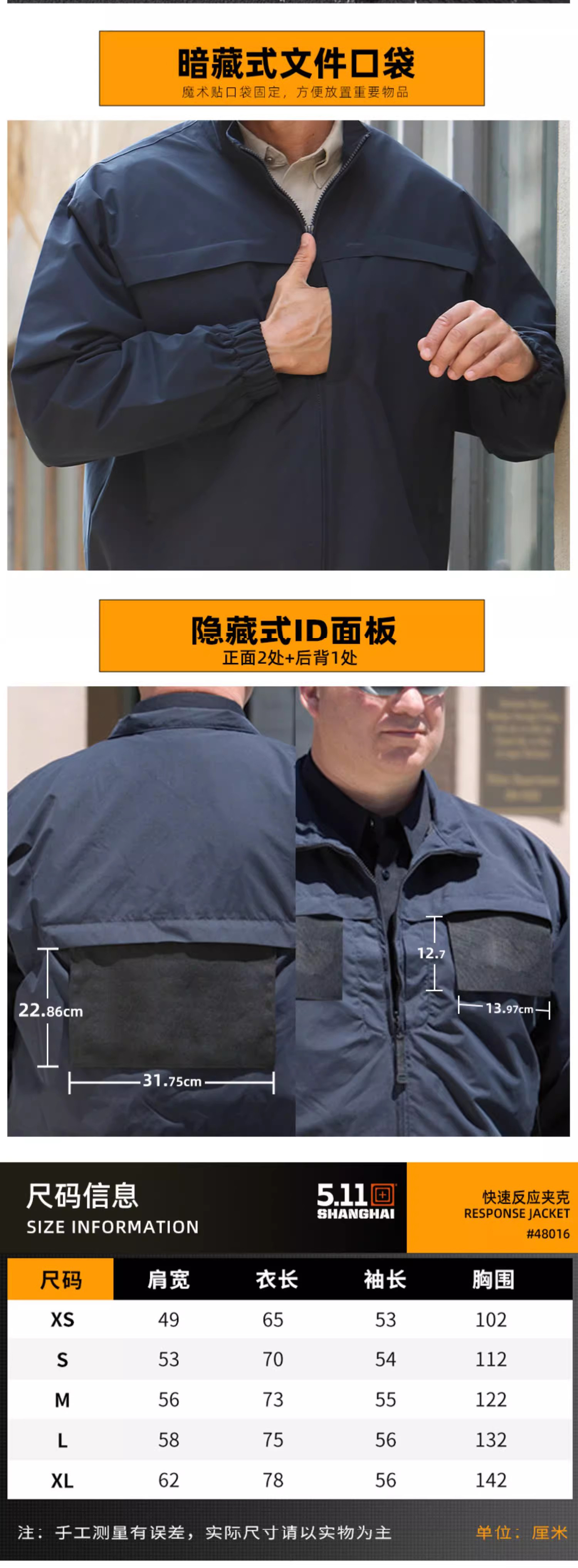5.11战术外套 511保暖防风夹克男户外战术外套休闲夹克风衣 48016