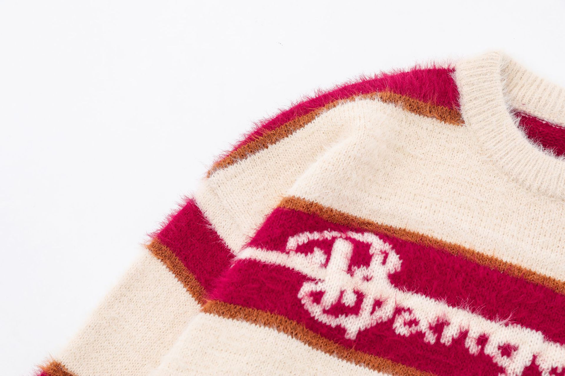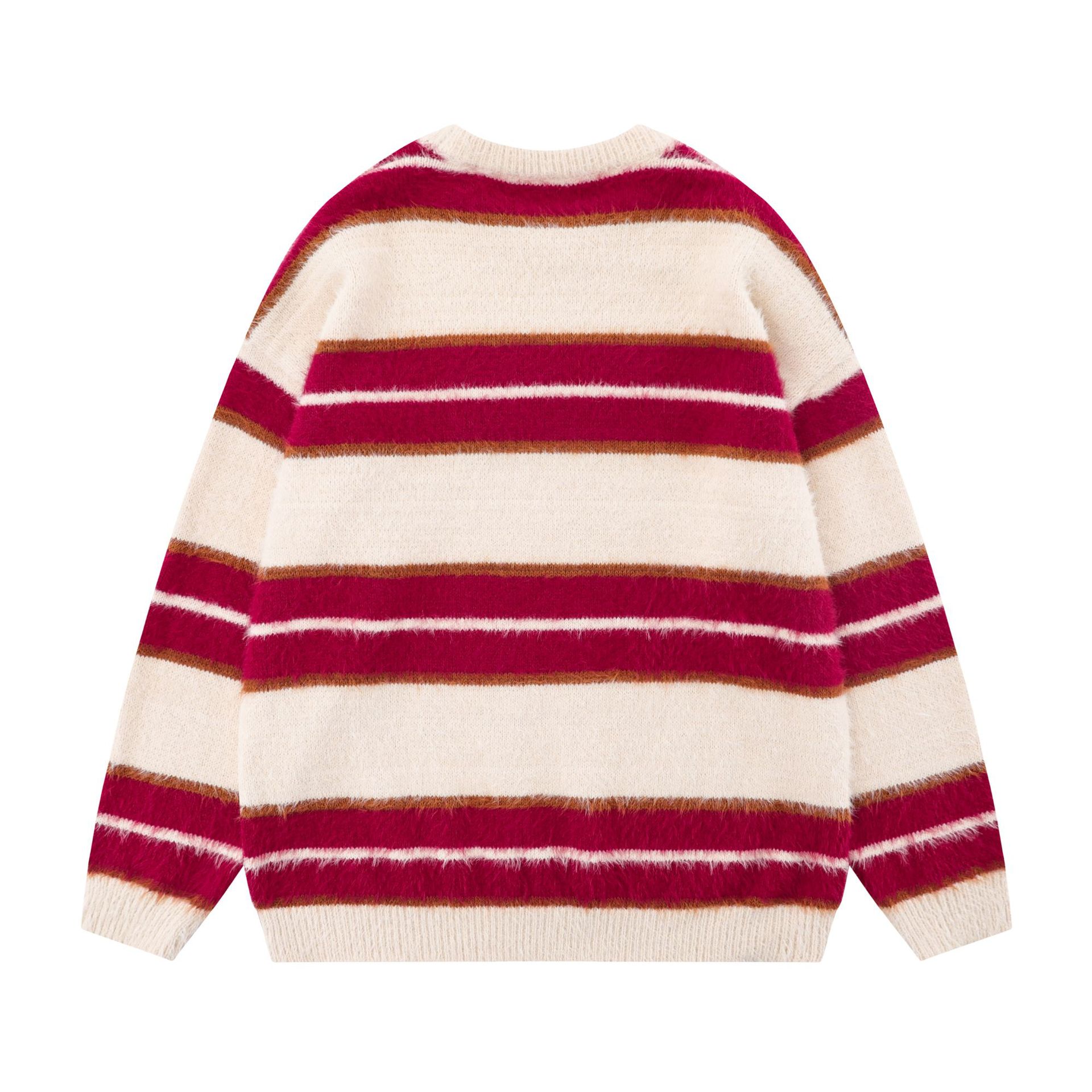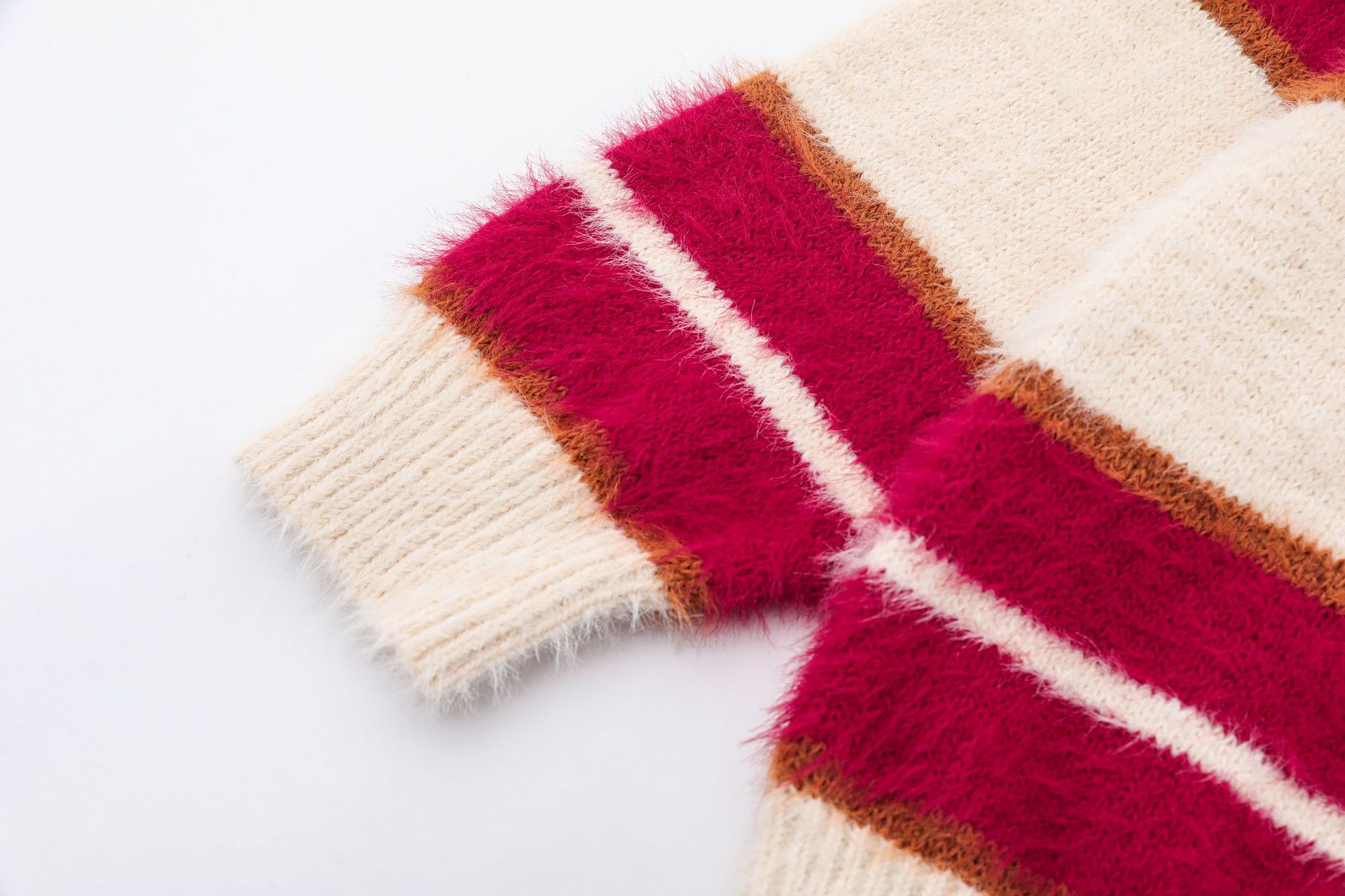 【服饰专场】秋冬新款实拍美式复古贴布刺绣条纹毛茸茸圆领毛衣