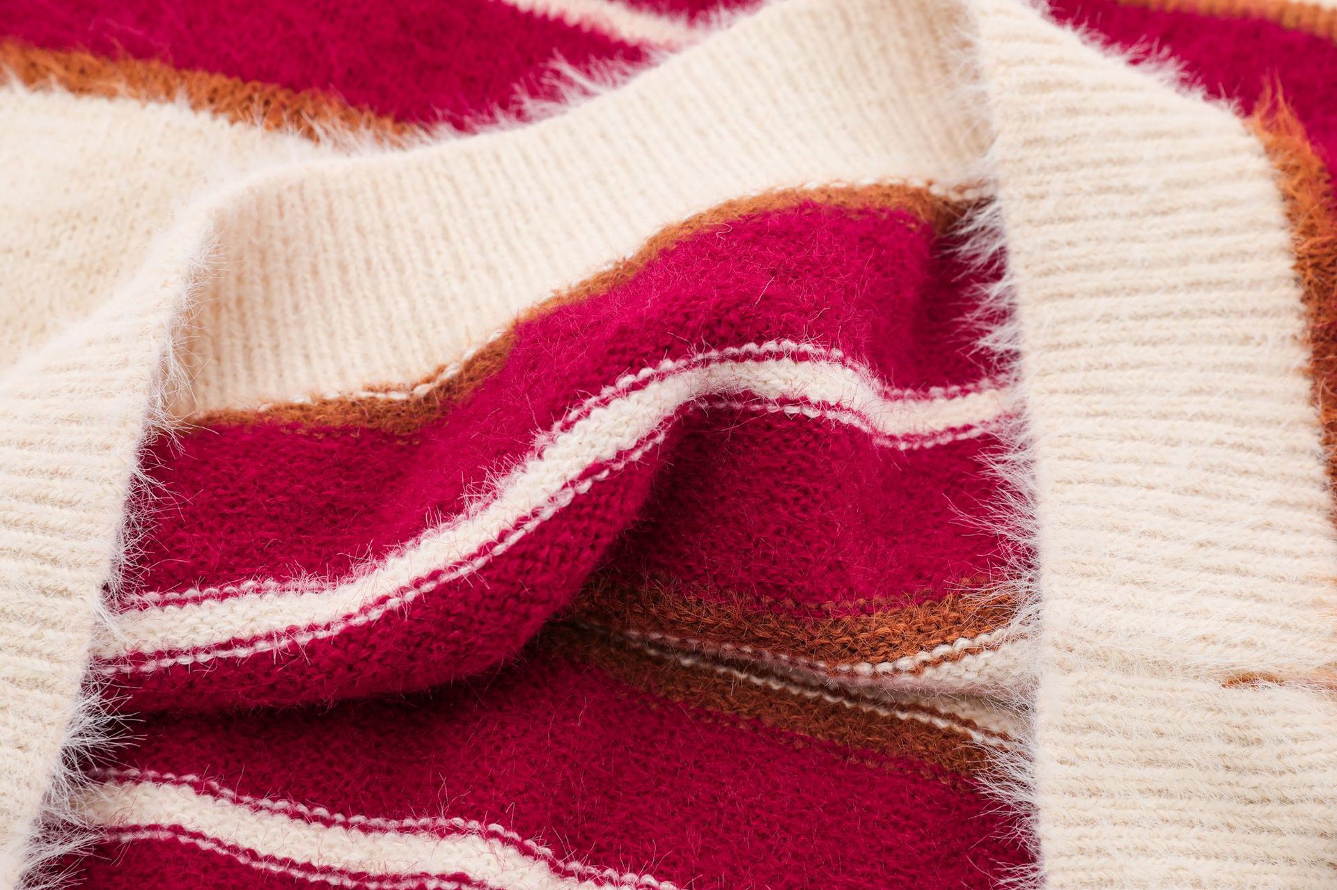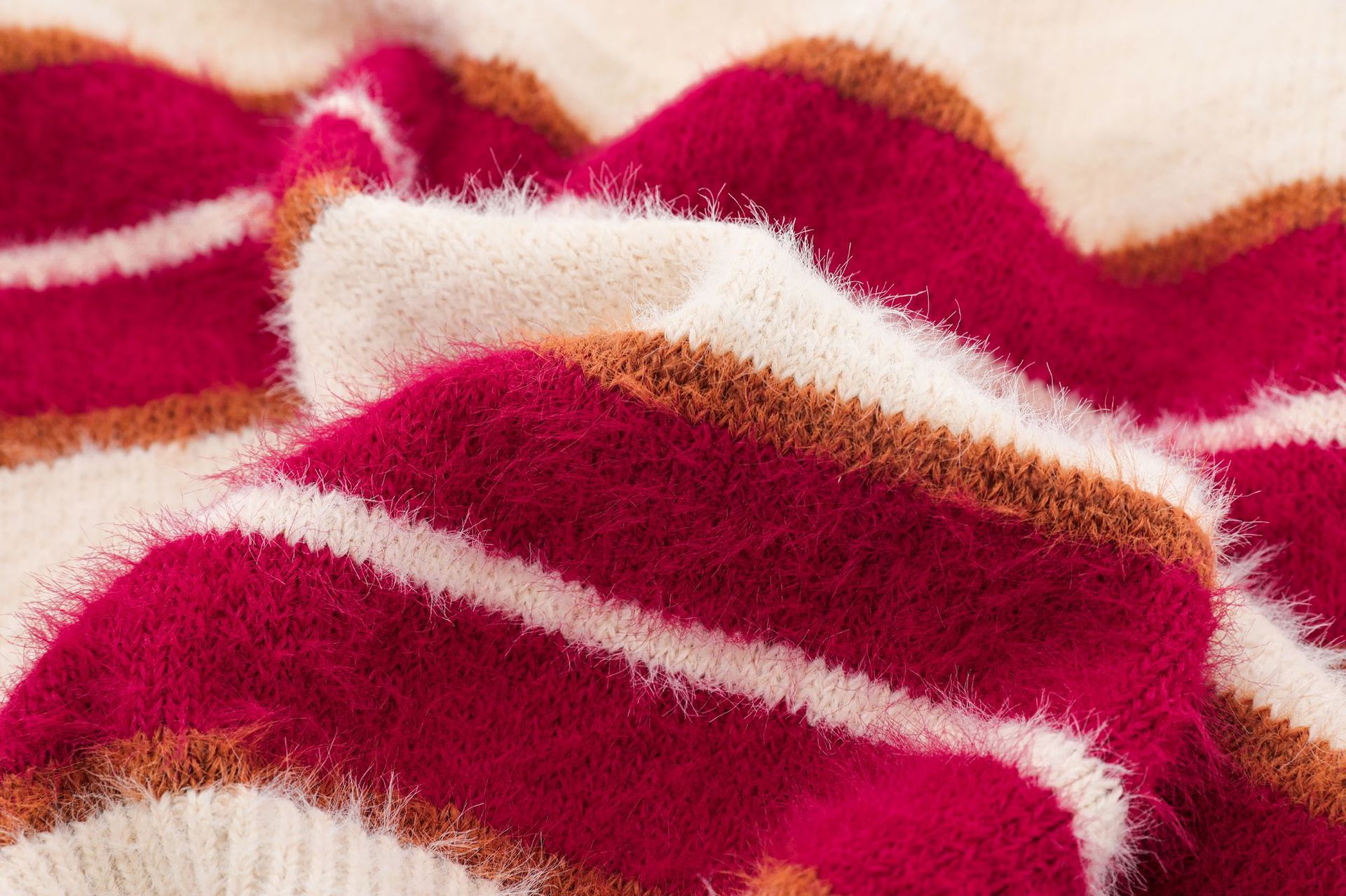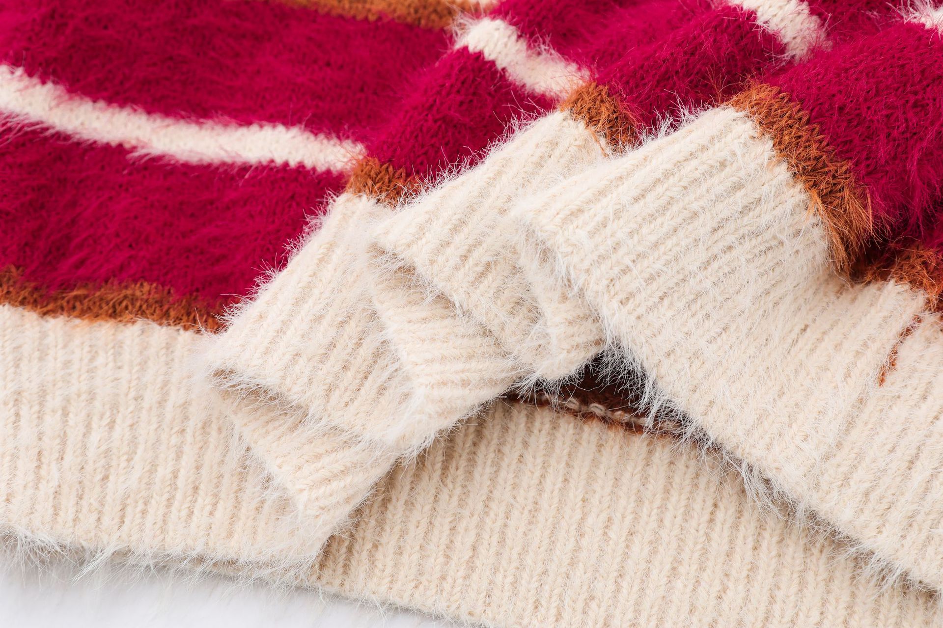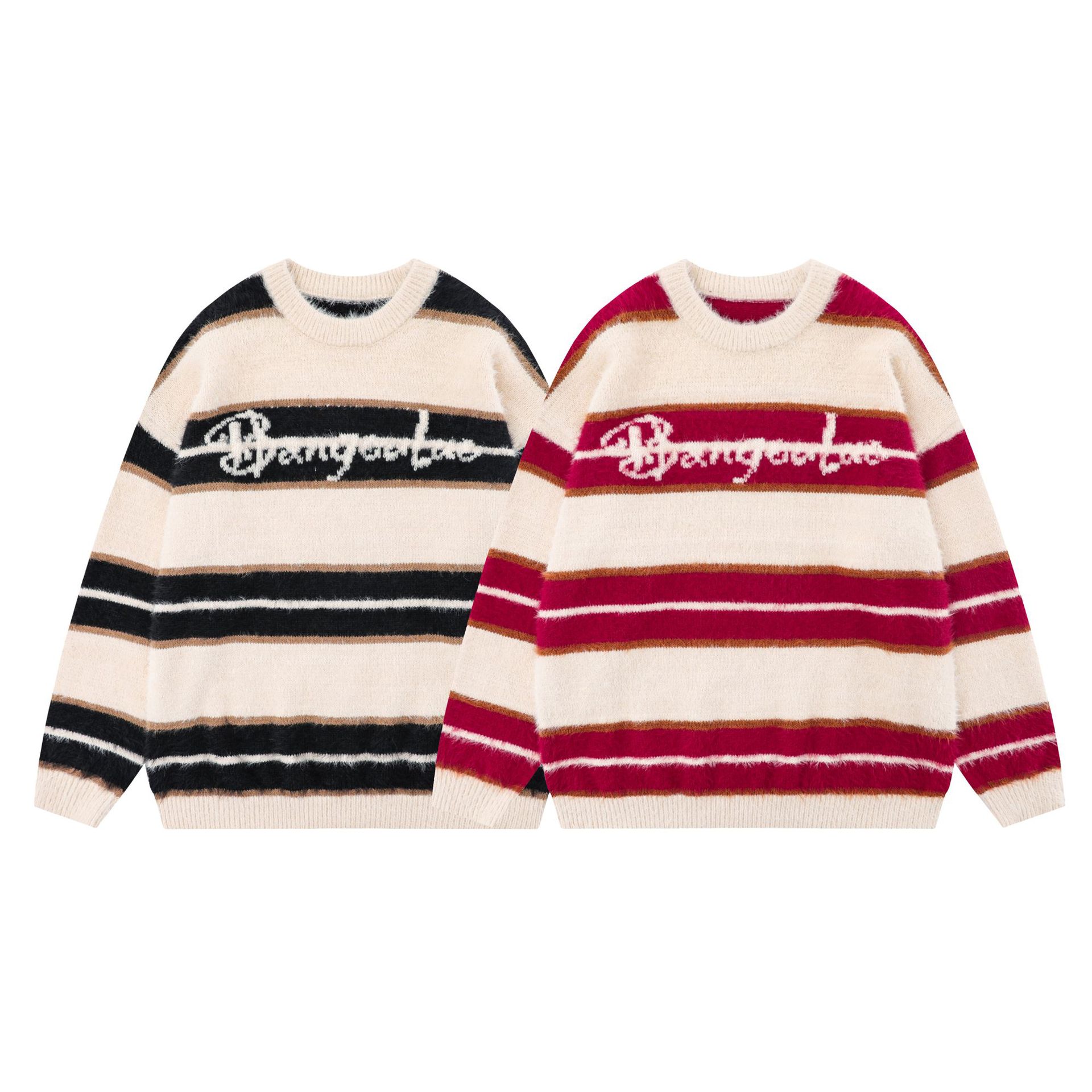 【服饰专场】秋冬新款实拍美式复古贴布刺绣条纹毛茸茸圆领毛衣