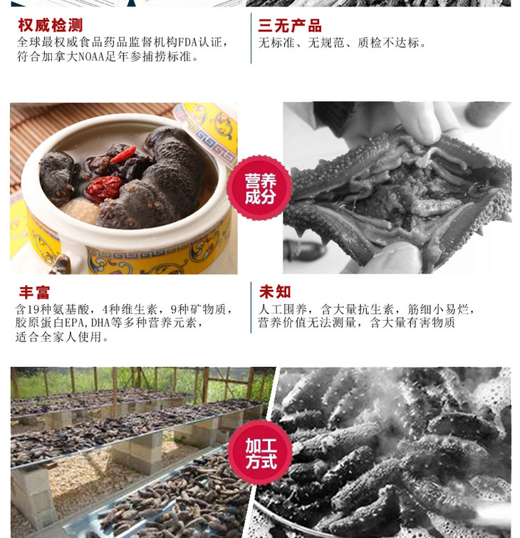 本品为100%原装进口加拿大野生海参,大包装(1磅)454g,20头等级!现特价冲量仅售499元 起(全国包邮)!(原价998元,冲量限时特价中)