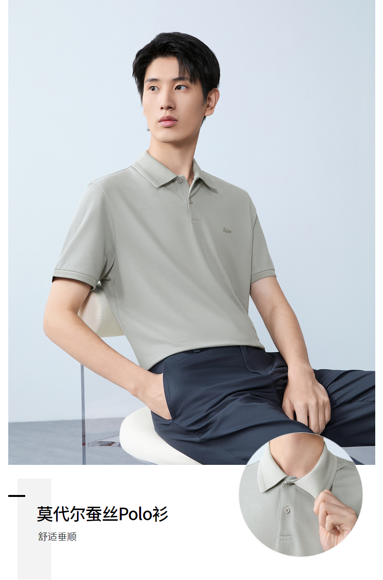 【桑蚕丝/提花POLO衫】柒牌男装26夏上新短袖POLO衫商务男士上衣 130T70920