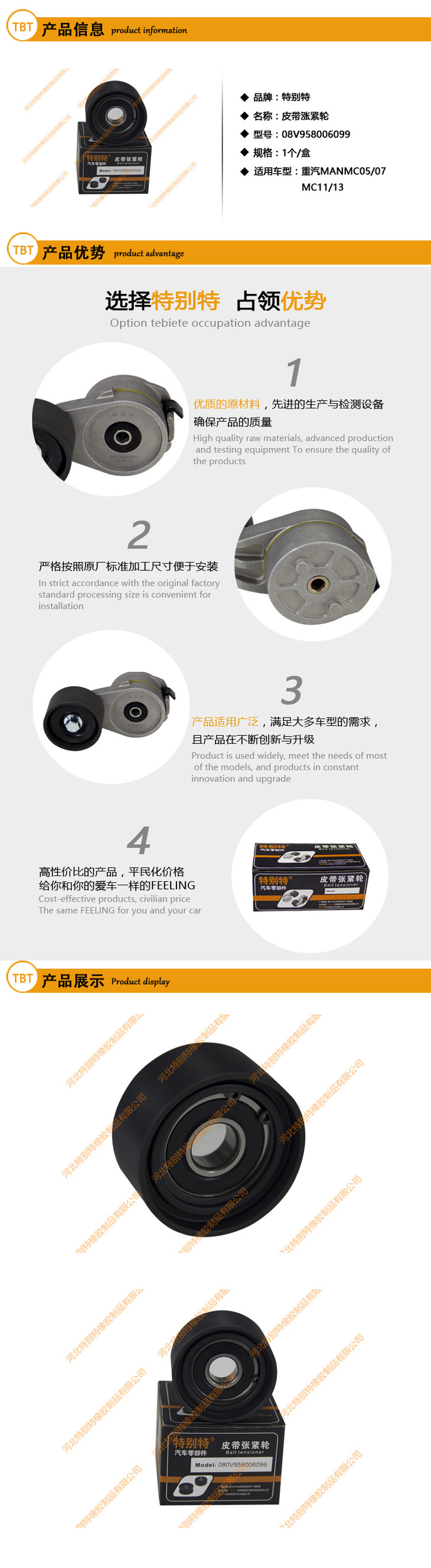 重汽MAN08V958006099/201V958006099惰轮202V95800-6098(带垫块与螺丝)MC05、MC07、MC11、MC13适用8pk1920/8pk1903)6099豪沃