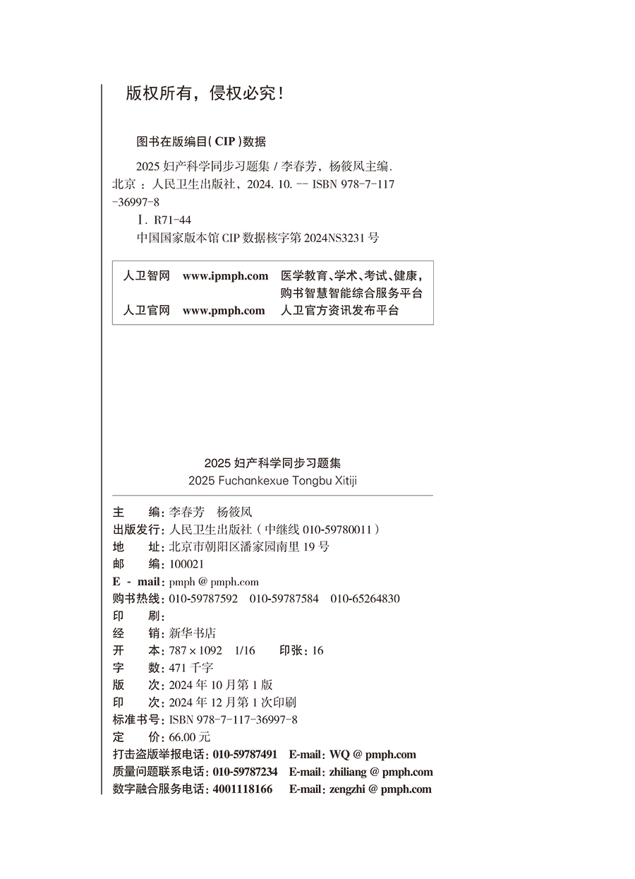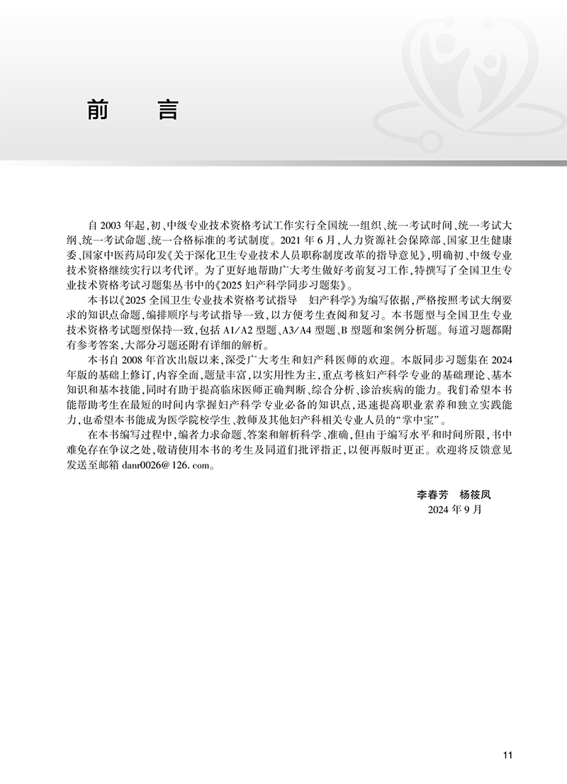 2025妇产科学同步习题集 全国卫生专业技术资格考试习题集丛书 李春芳 杨筱凤 适用专业妇产科学 中级9787117369978人民卫生出版社