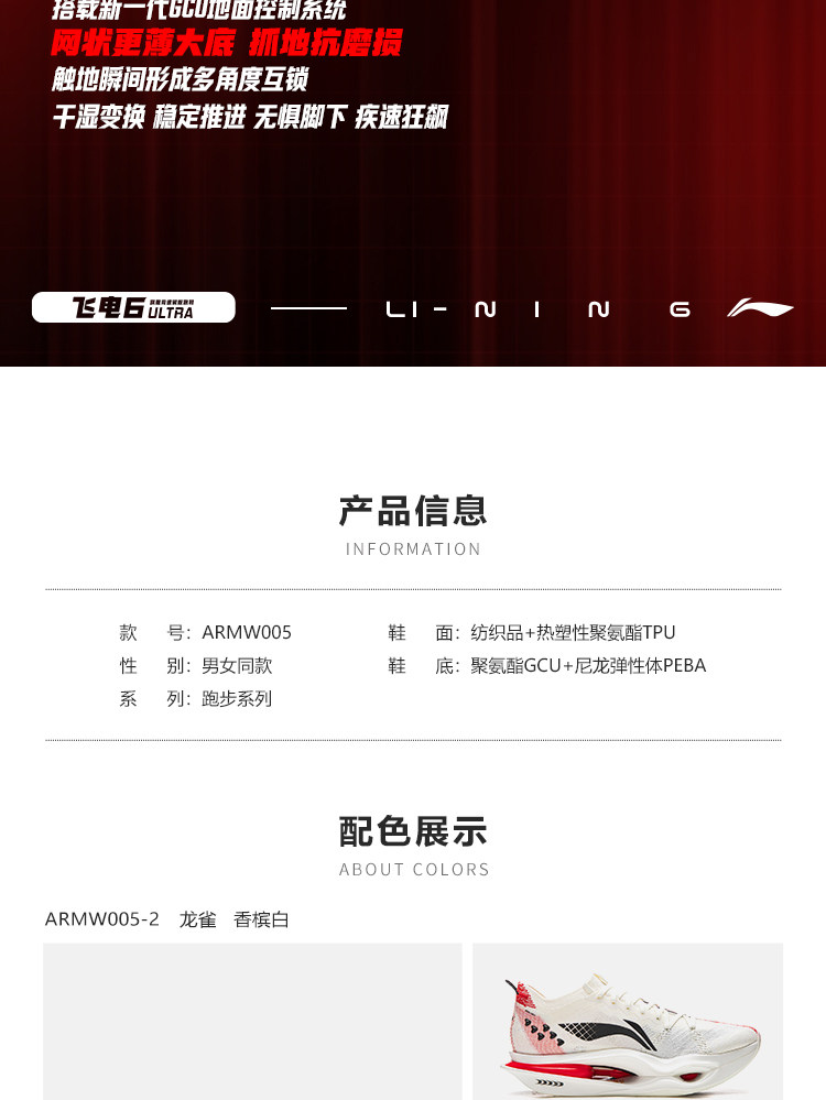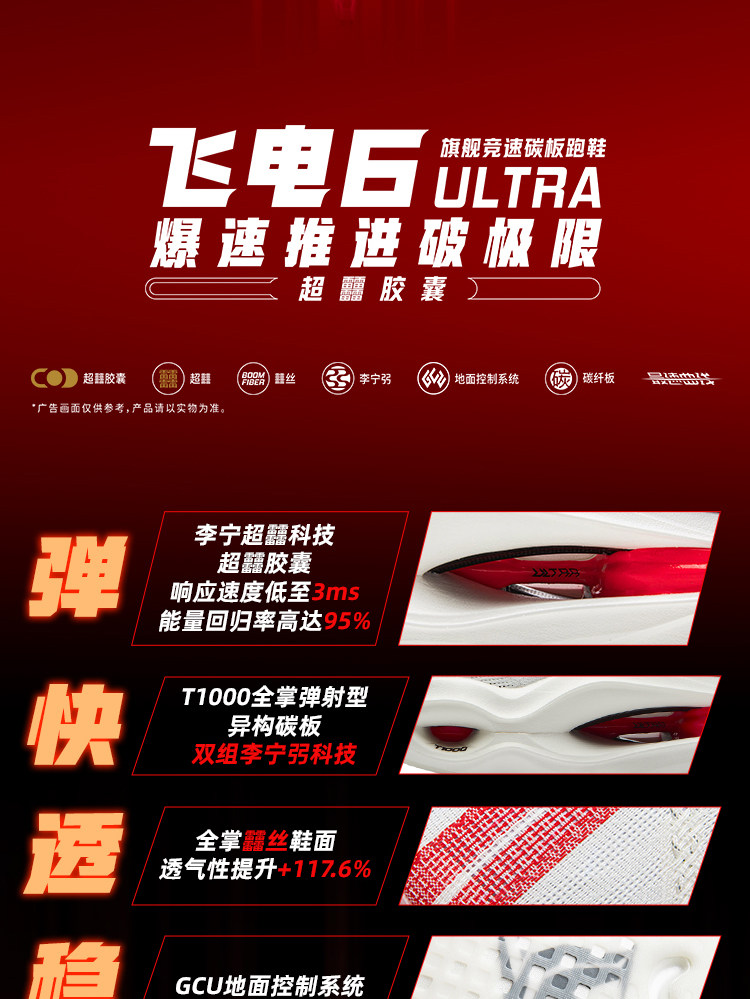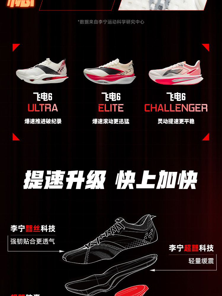 李宁 飞电6 ULTRA 男女款 26年新款䨻丝轻量缓震专业竞速训练跑步鞋