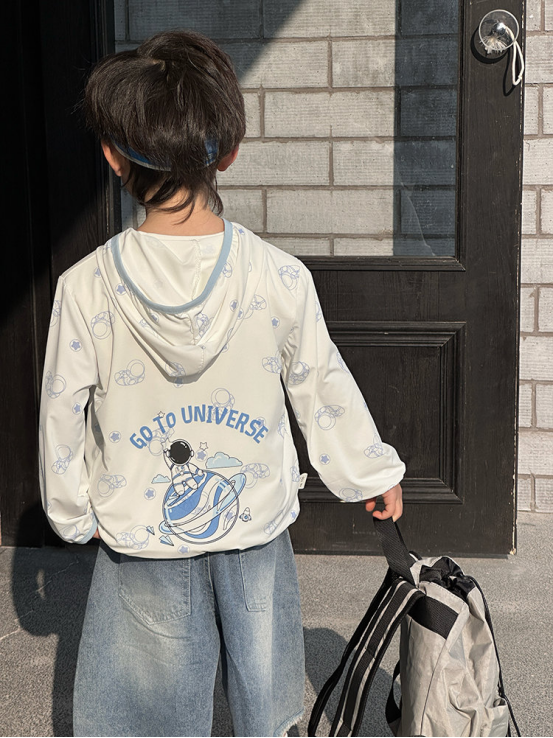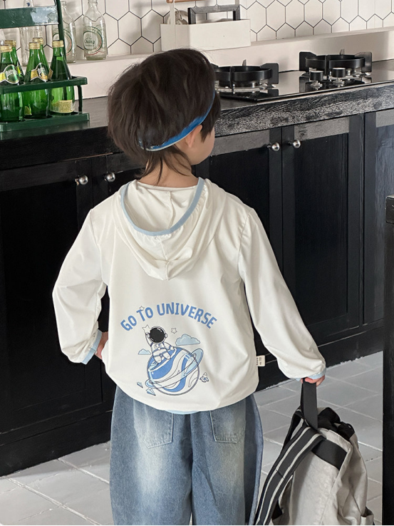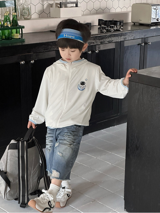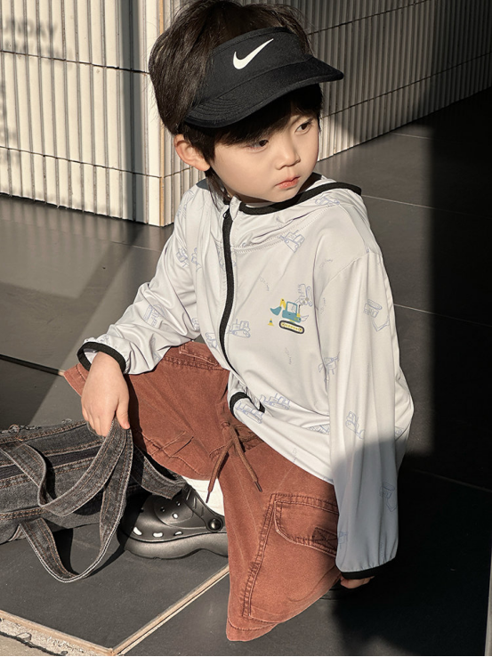 孩子夏天真的不能少了防晒外套哈,而且是这种穿了防晒又无感透气的,很难遇到这种孩子愿意穿的爱穿的防晒! 冰丝面料,轻薄凉爽、柔软细腻,专为肌肤带来全新的舒适体验!透气性超好! 简简单单的运动款样式,男孩女孩都能hold住,卡通点缀设计,感觉十分清爽可爱,很适合小朋友穿着