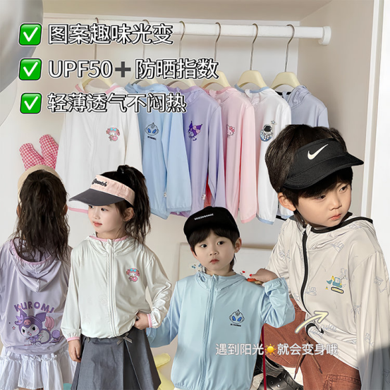 🏆今天就给妈妈们推荐1件防晒装备!🆙【儿童冰爽凉感卡通趣味变光防晒服5062】 🔥防晒、凉感、超薄透气又好看,✨优秀的儿童防晒衣原来是这样的!