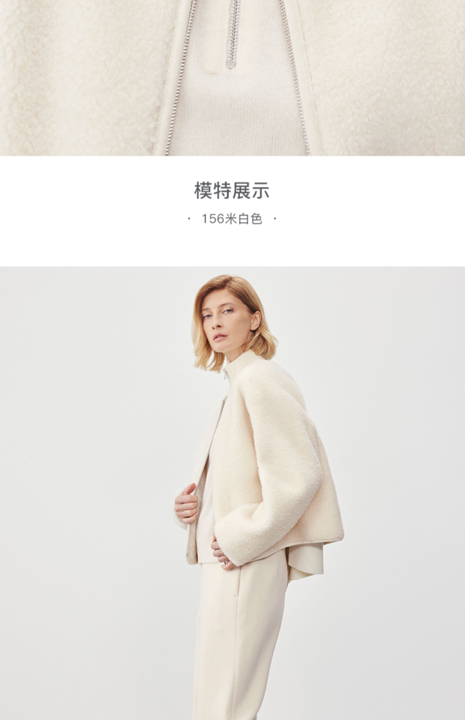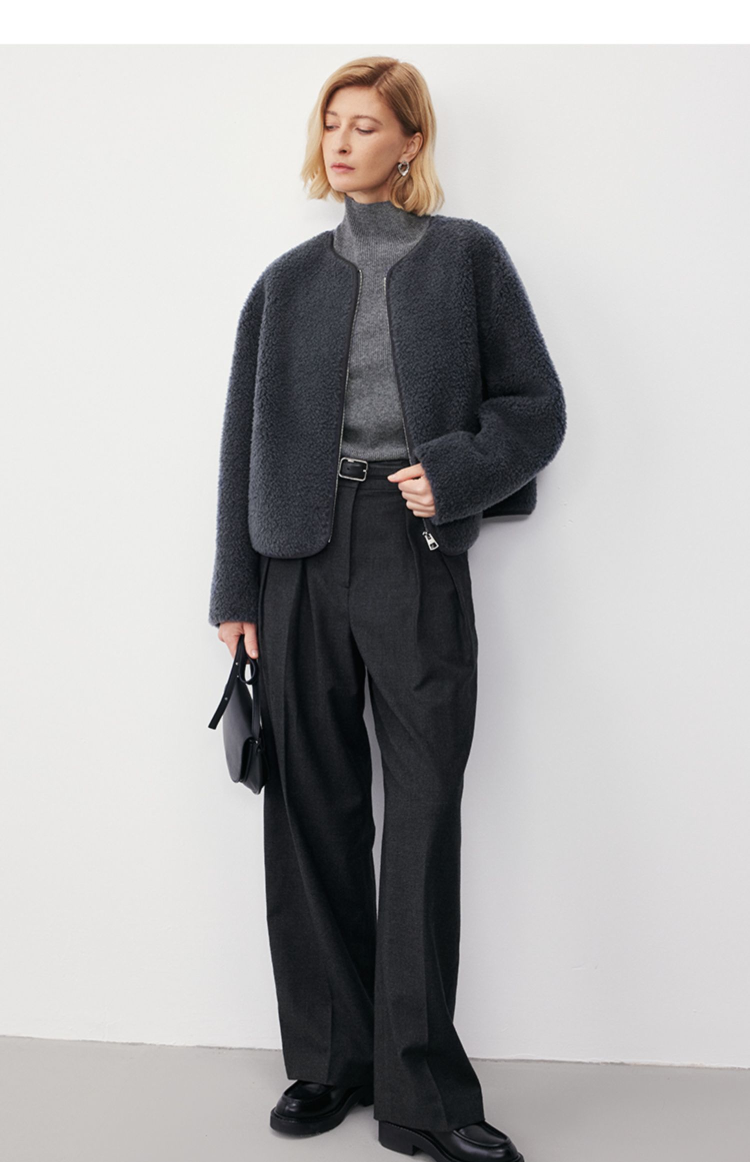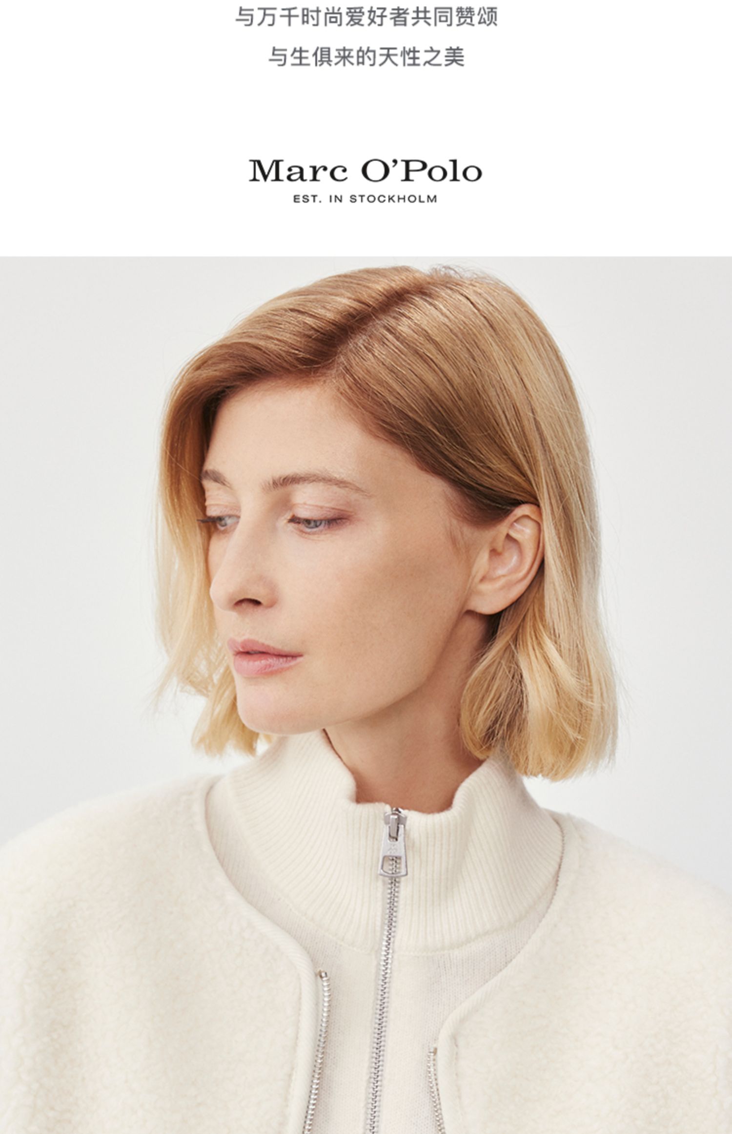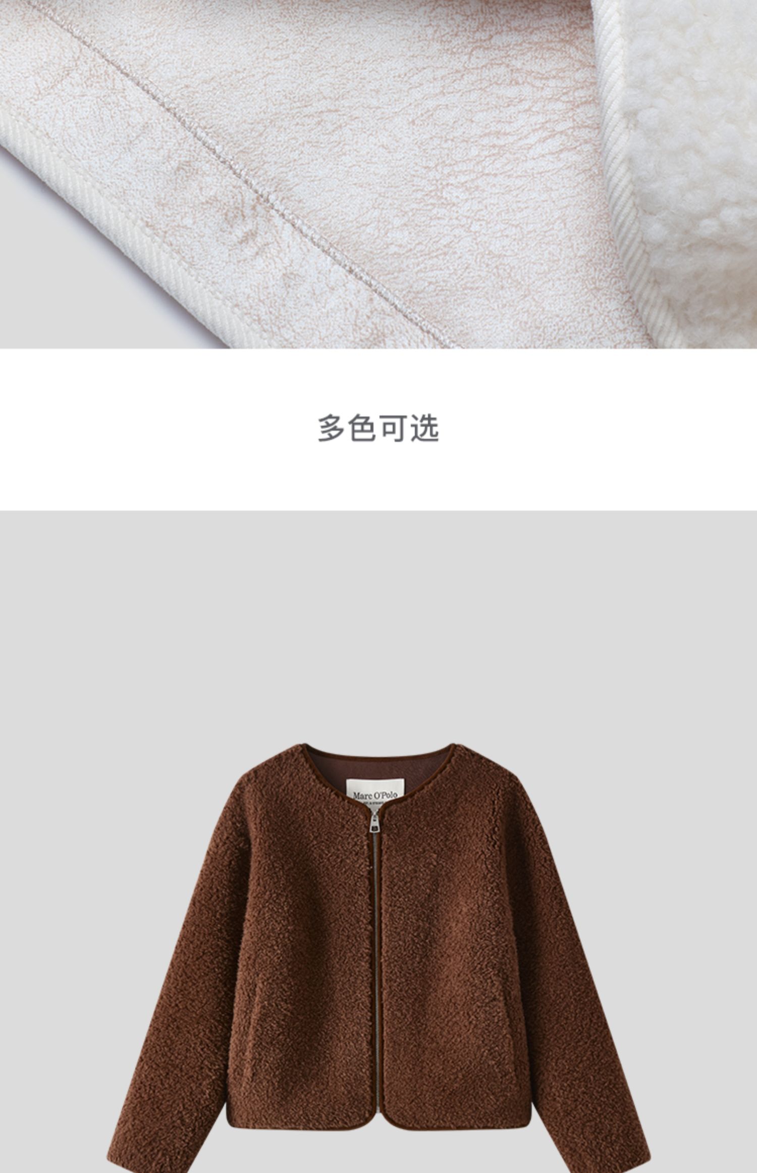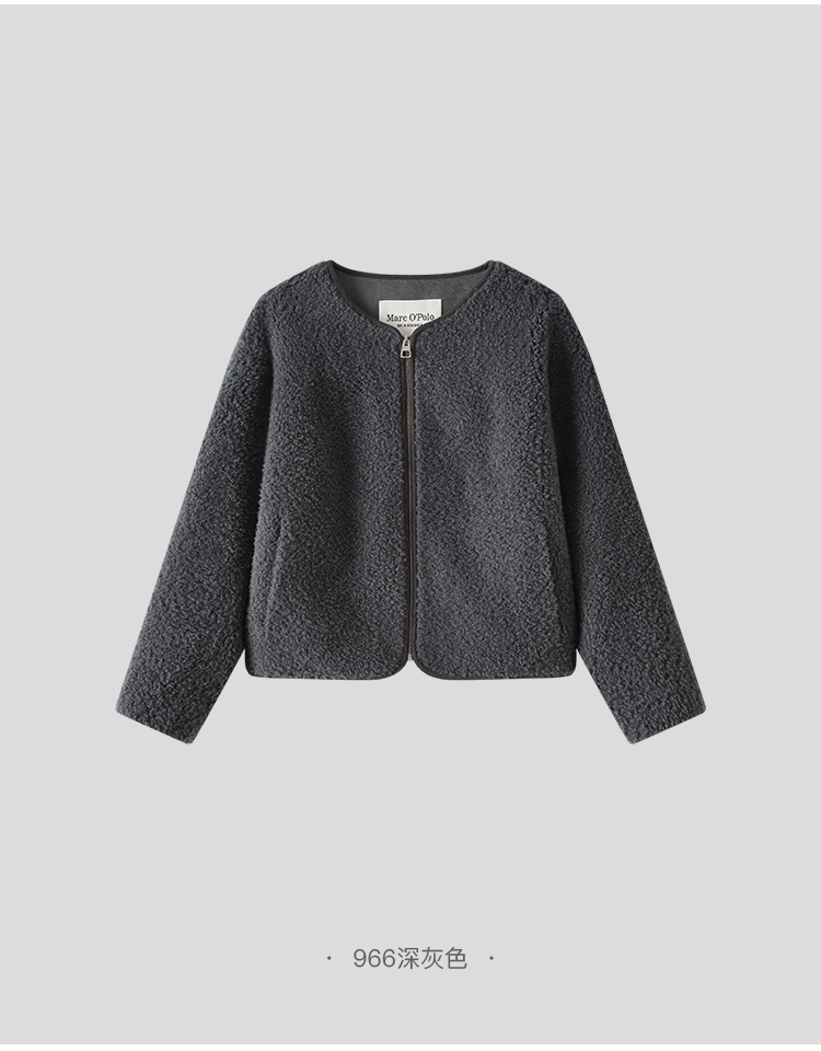 Marc O'Polo/MOP冬季新款静奢小香风短款绵羊毛外套夹克女士