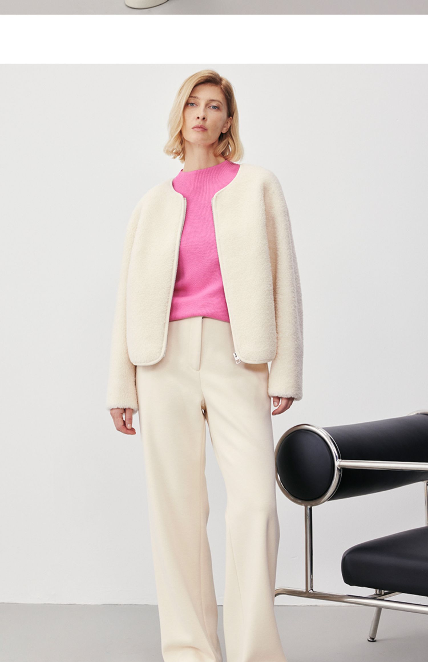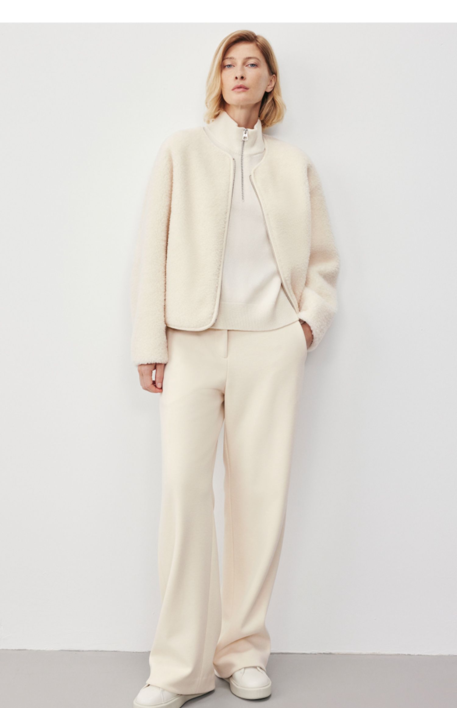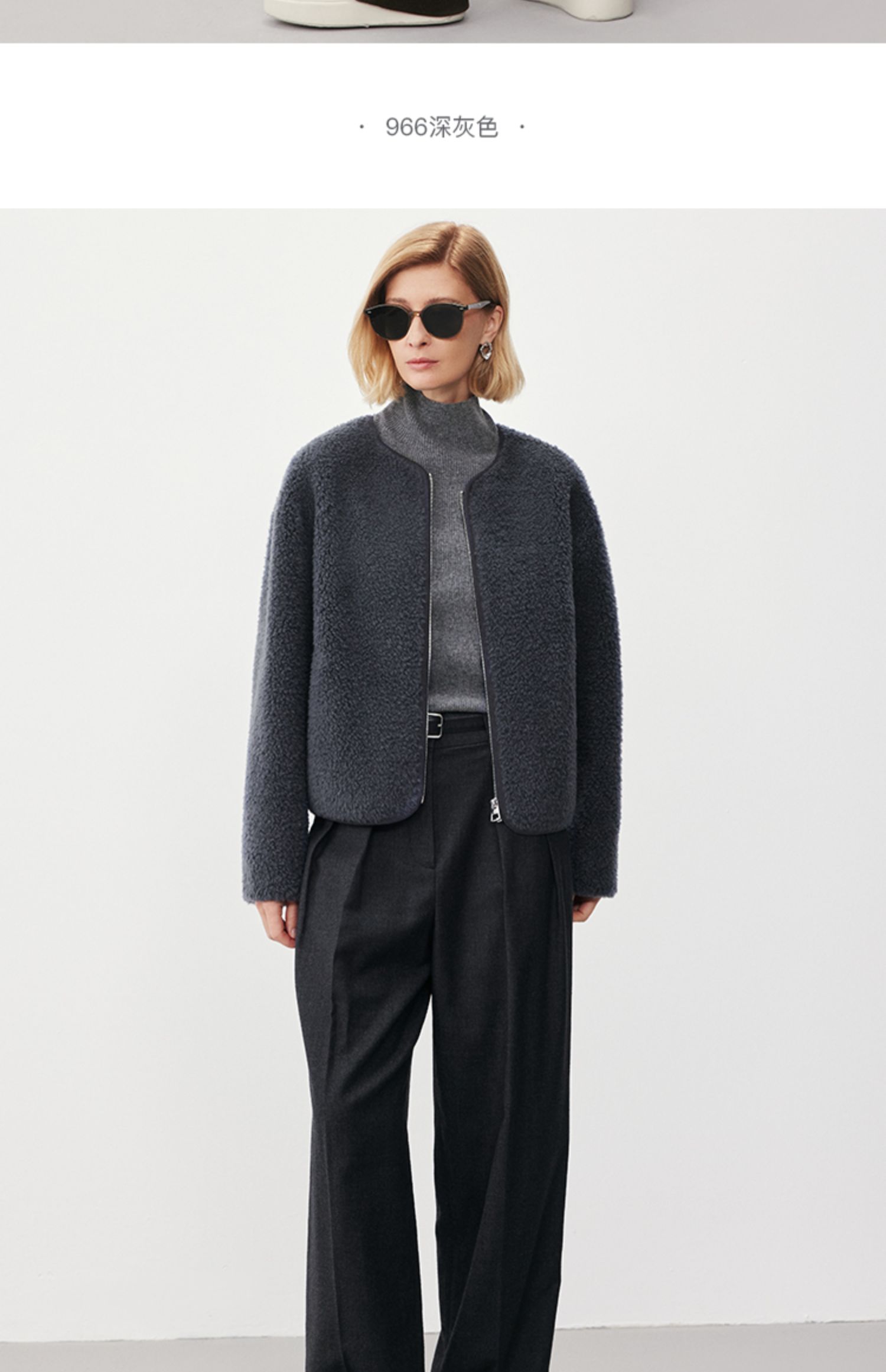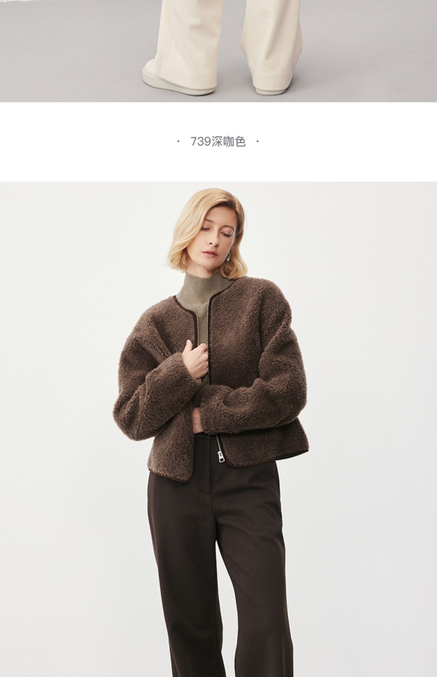 Marc O'Polo/MOP冬季新款静奢小香风短款绵羊毛外套夹克女士