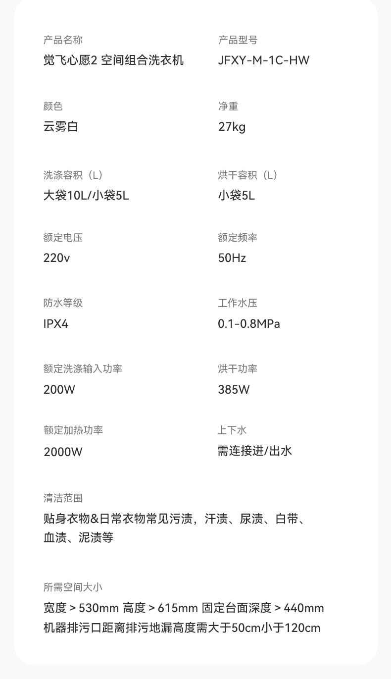 JOYFACE/觉飞 心愿2 空间组合洗衣机 双门版