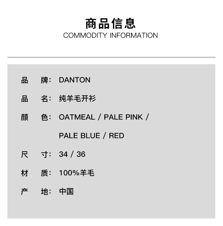 DANTON LMW_CREW NECK CARDIGAN 女装纯羊毛开衫毛衣