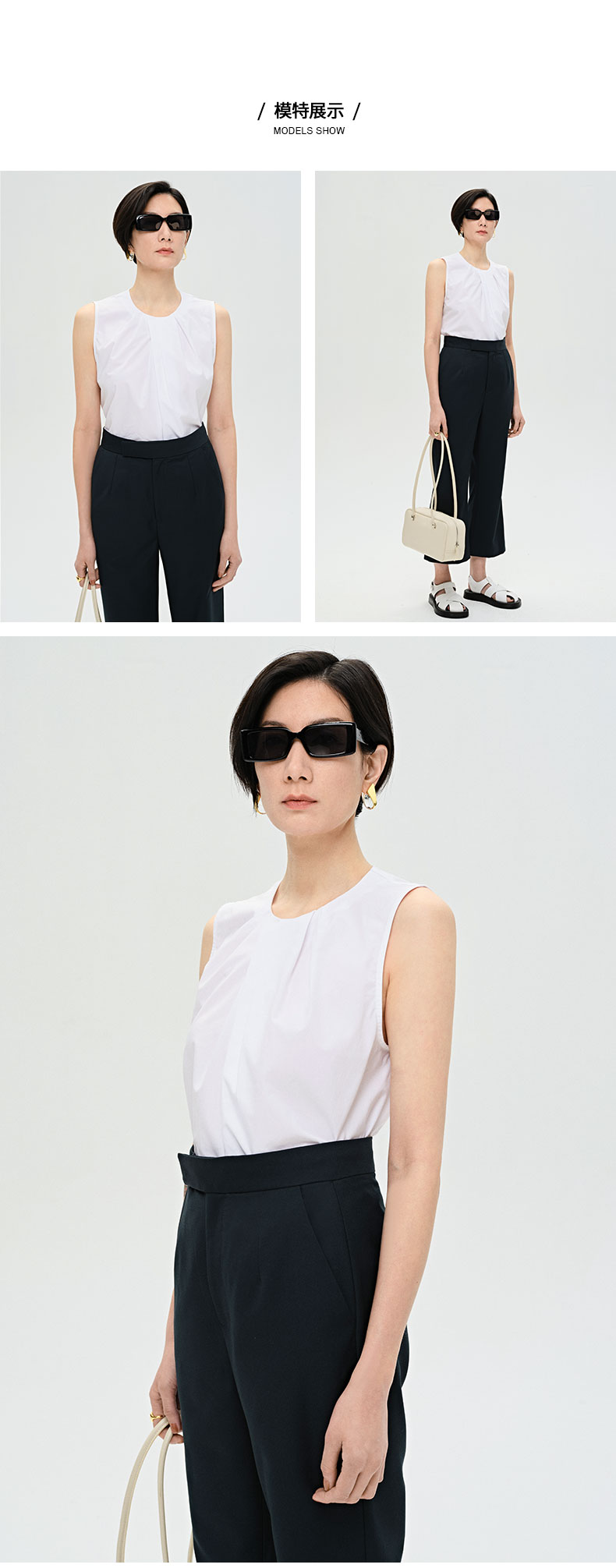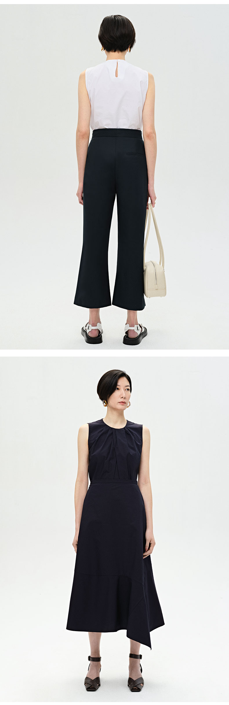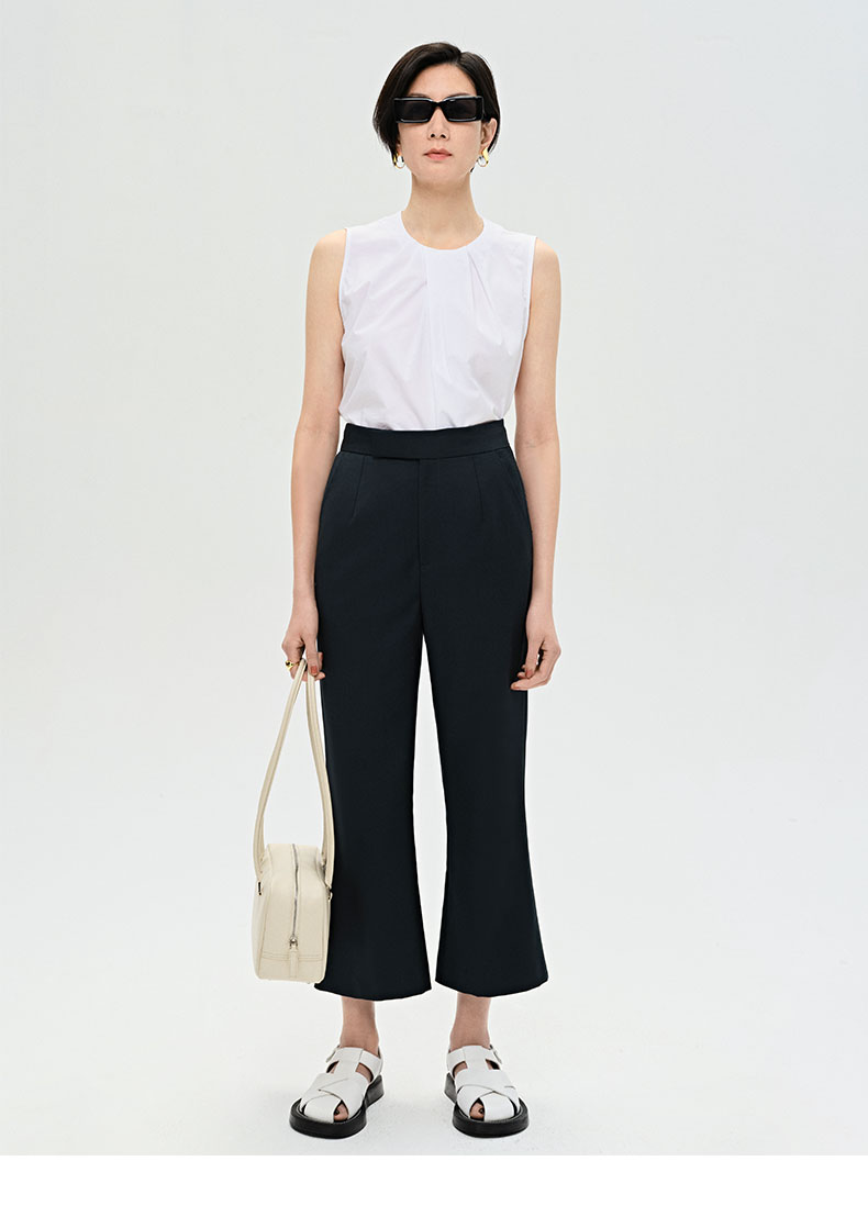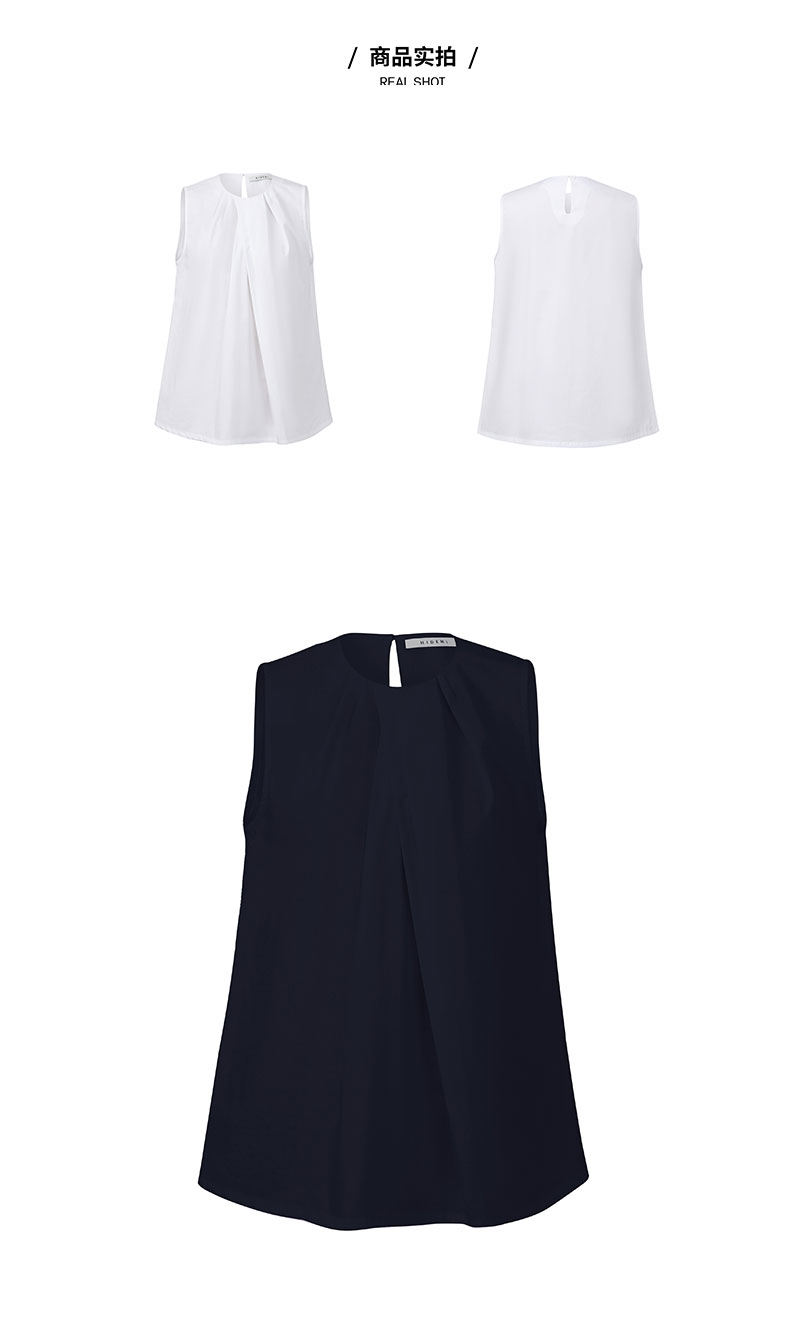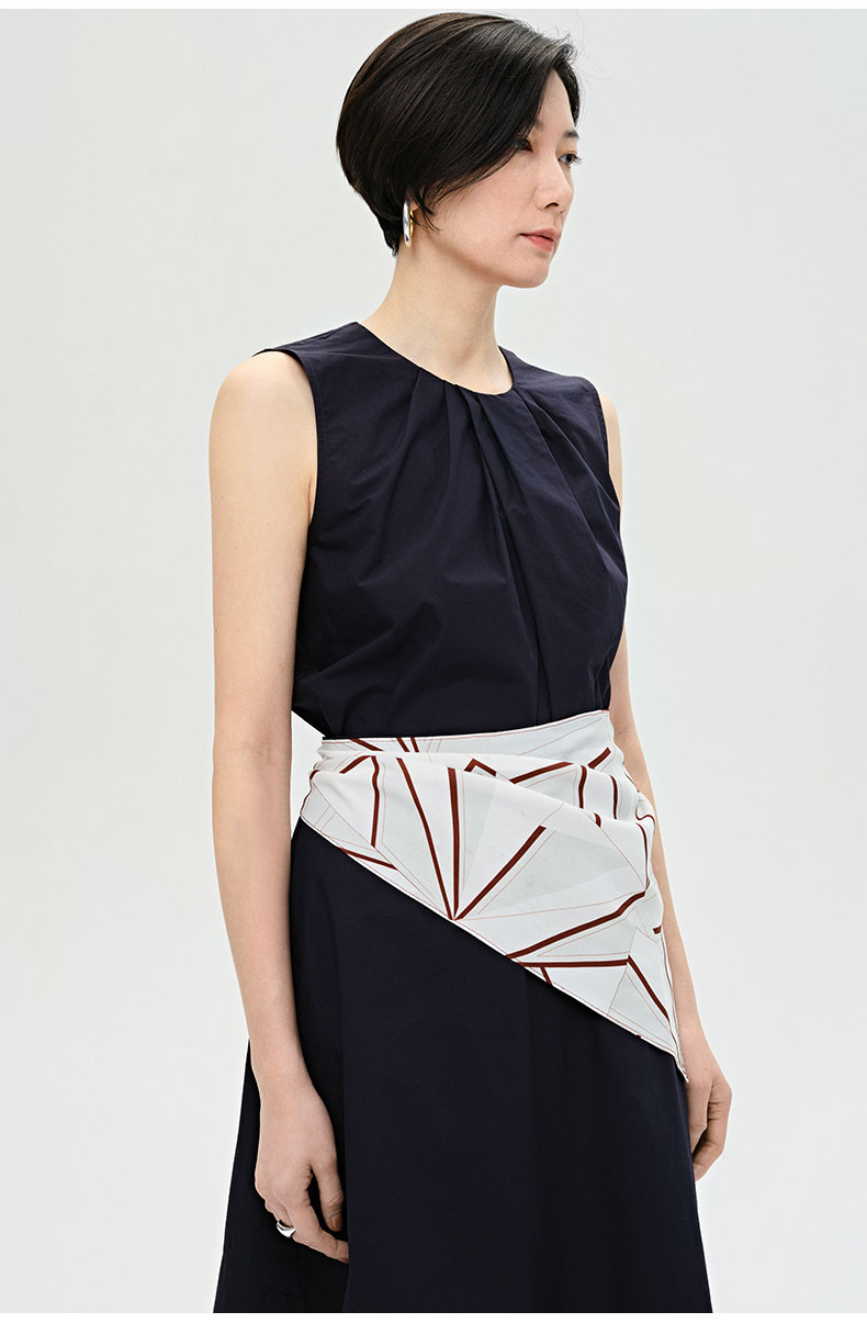 HIDEMI 褶皱设计感圆领棉质背心 藏蓝色/白色