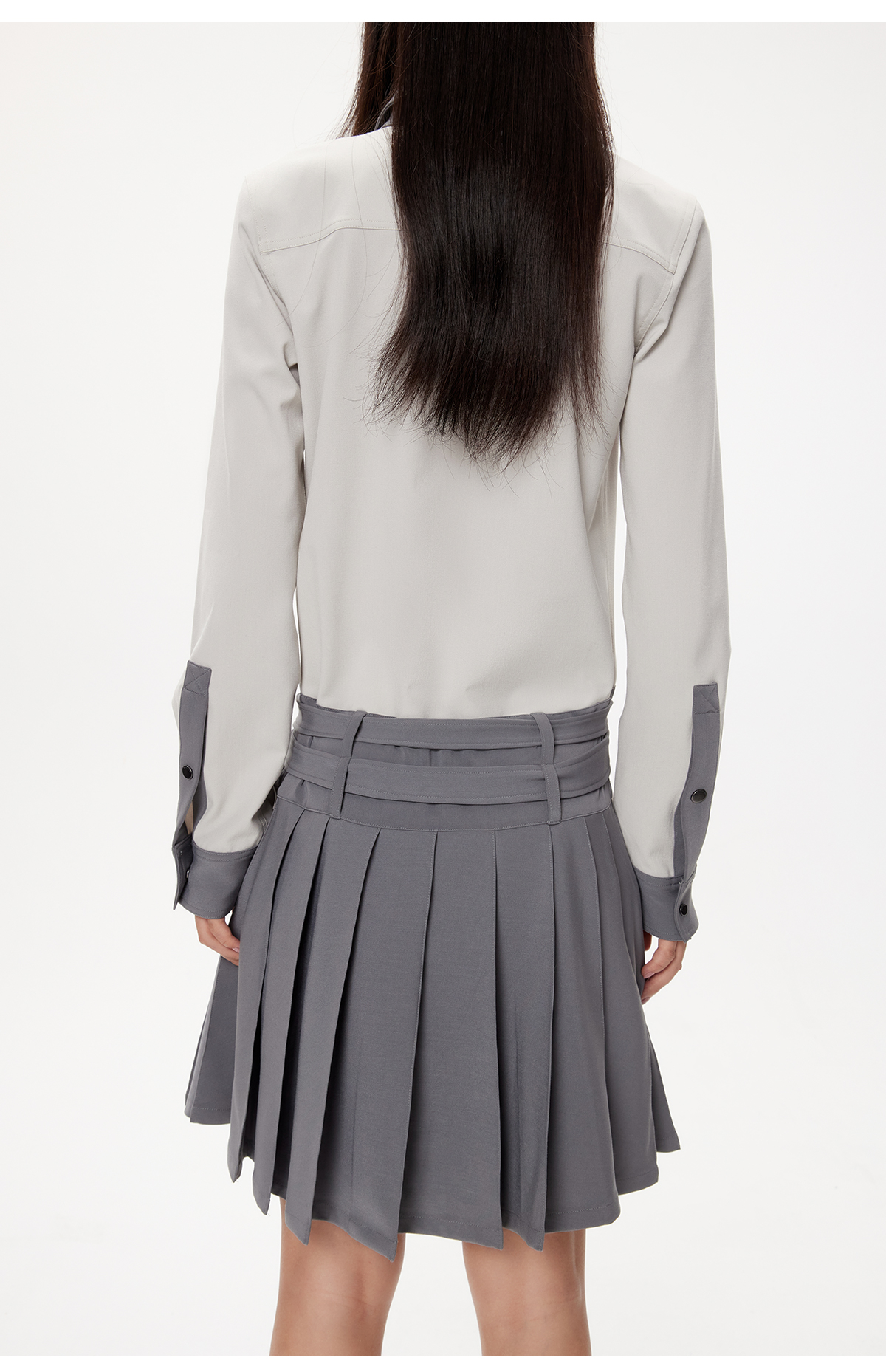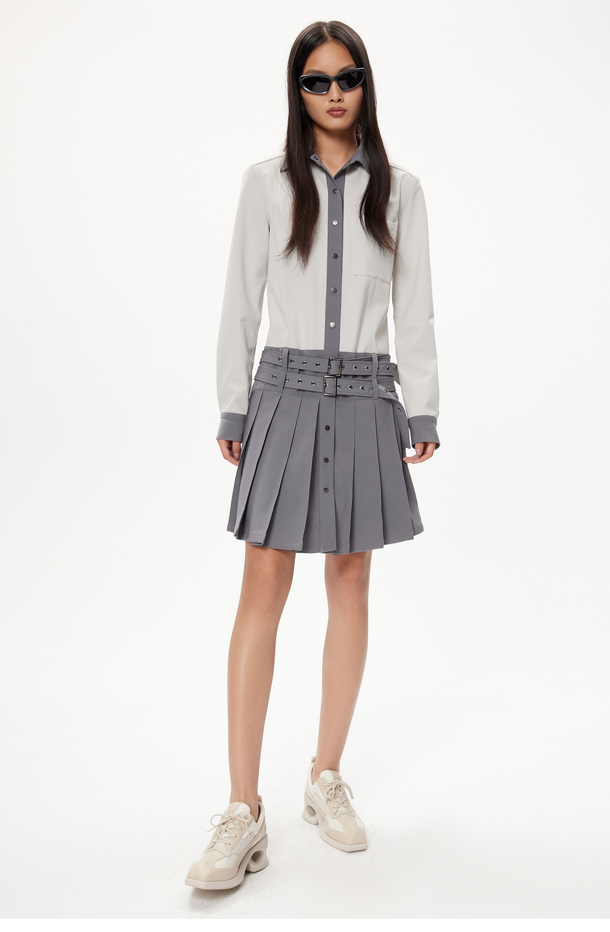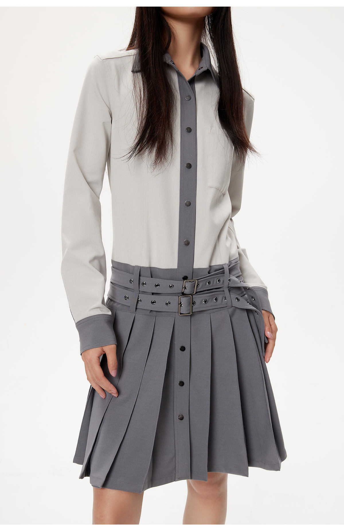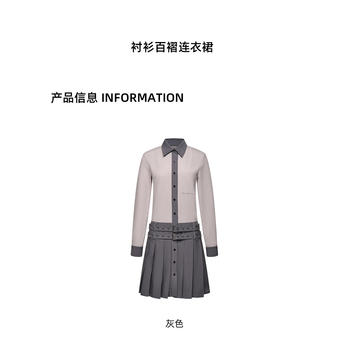 lost in echo设计师品牌小众舒适百搭低腰学院风衬衫百褶连衣裙女