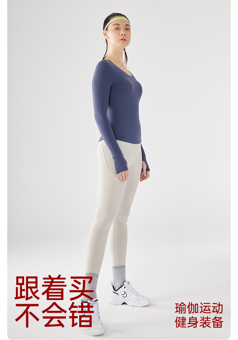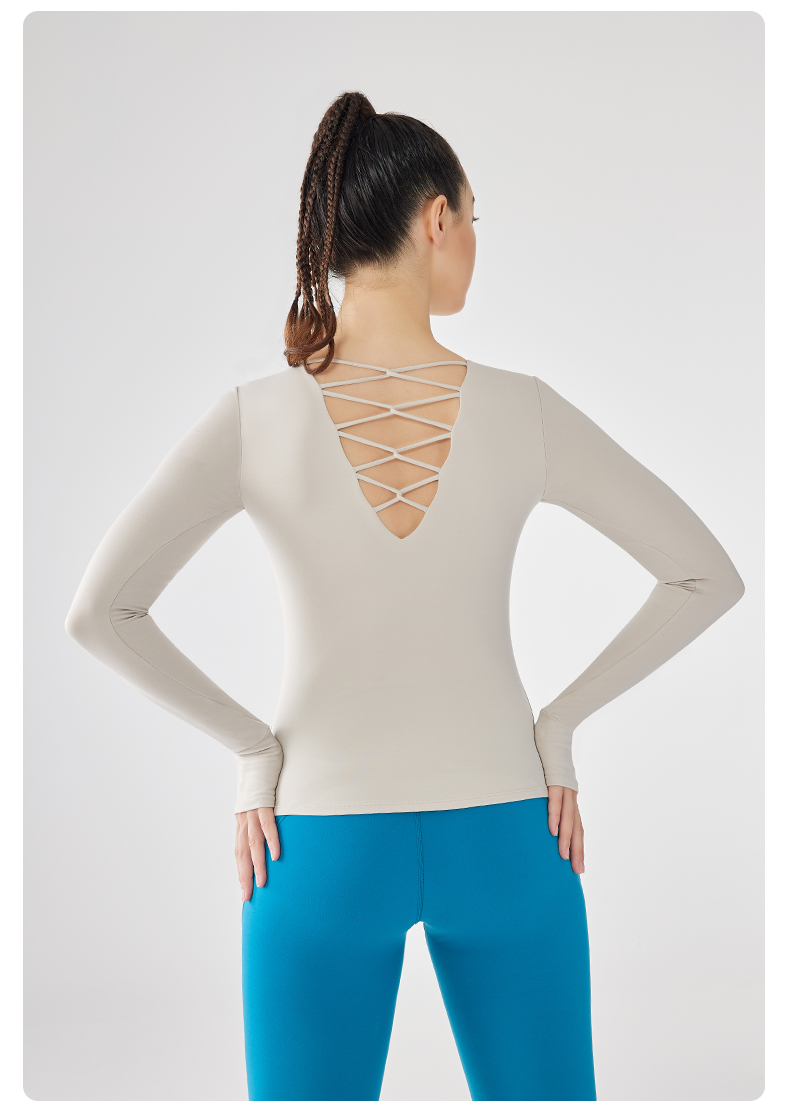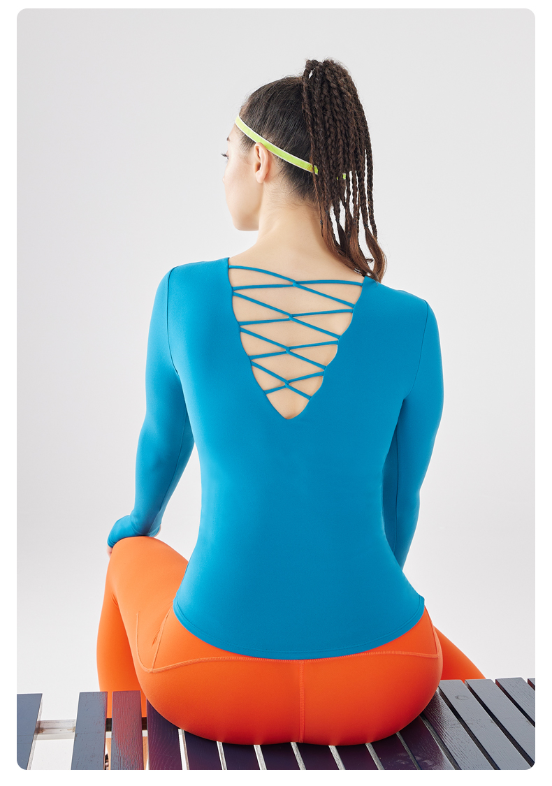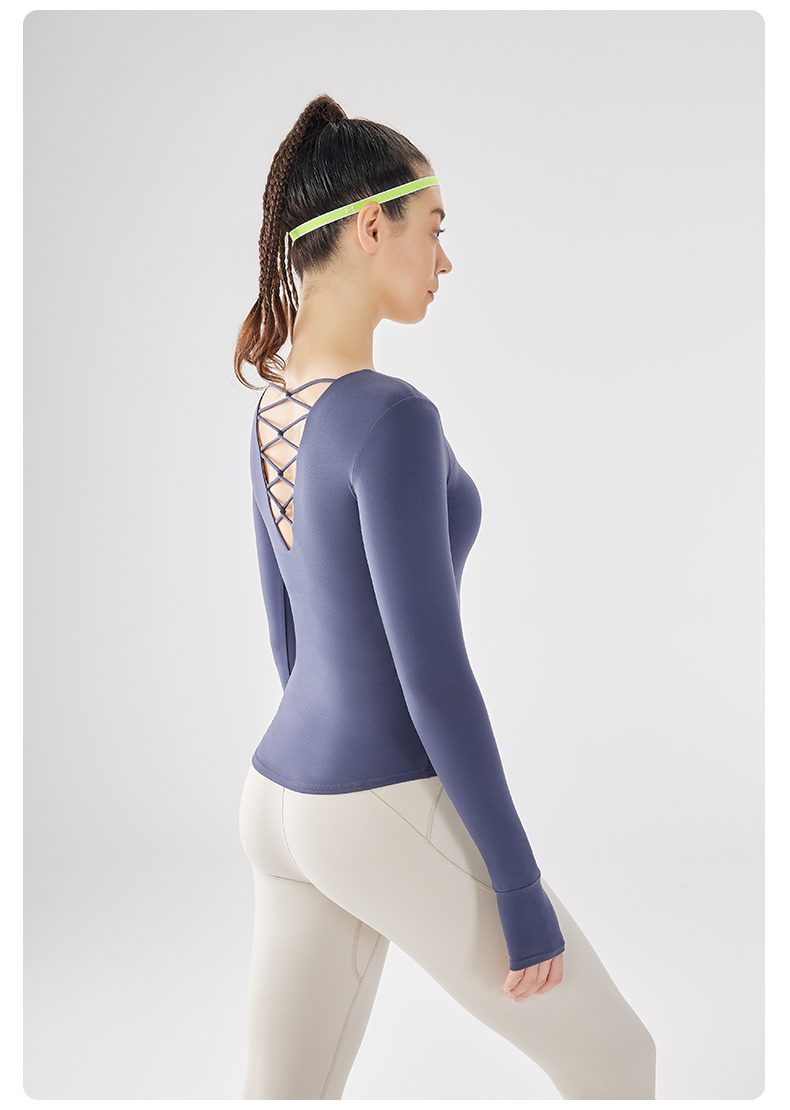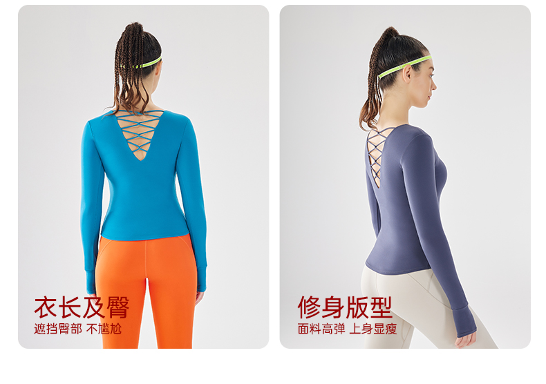 IYOGA瑜伽服V形美背长袖女紧身显瘦运动上衣亲肤轻磨毛莱卡CX023