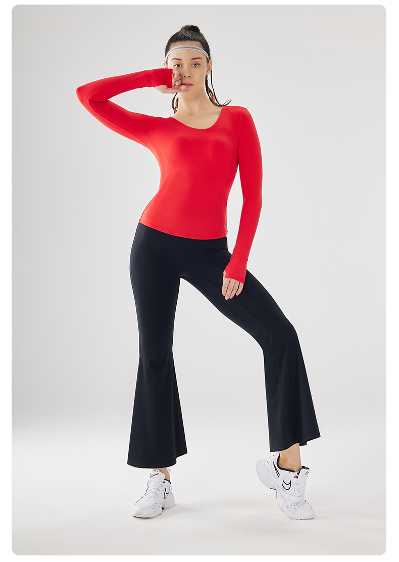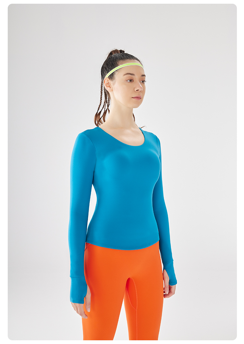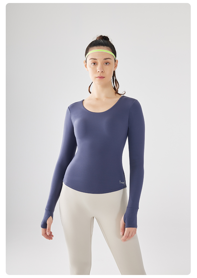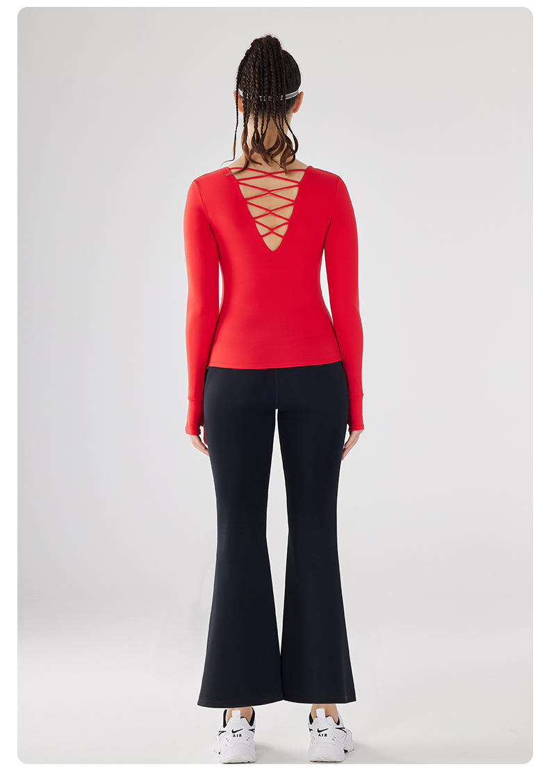 IYOGA瑜伽服V形美背长袖女紧身显瘦运动上衣亲肤轻磨毛莱卡CX023
