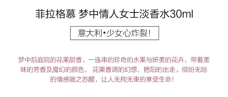 【香港直邮】意大利菲拉格慕 Salvatore Ferragamo 菲拉格慕 梦中情人淡香水 EDT 30毫升