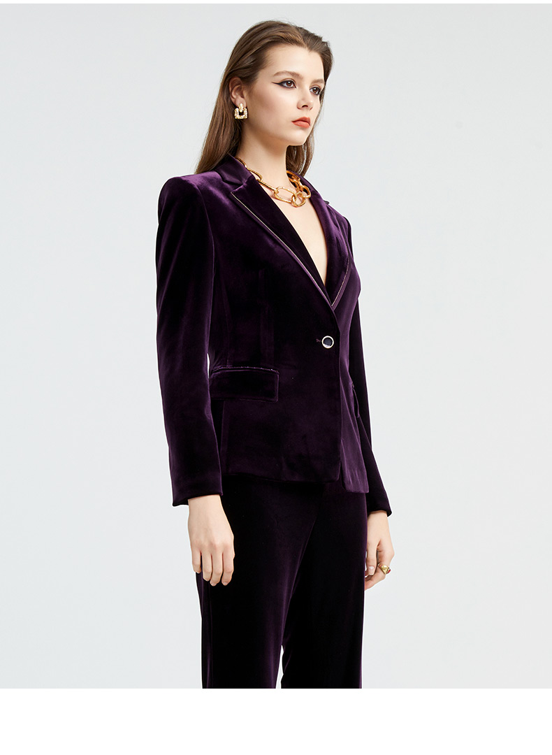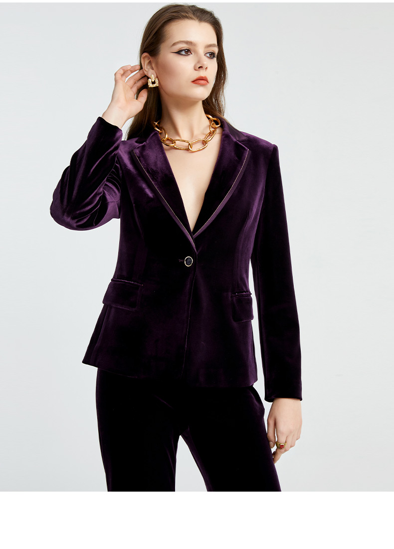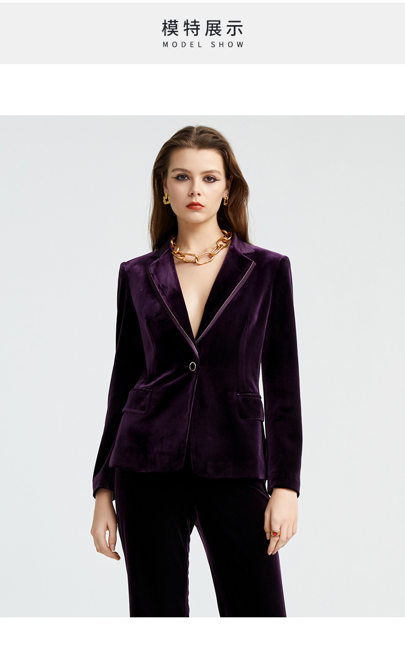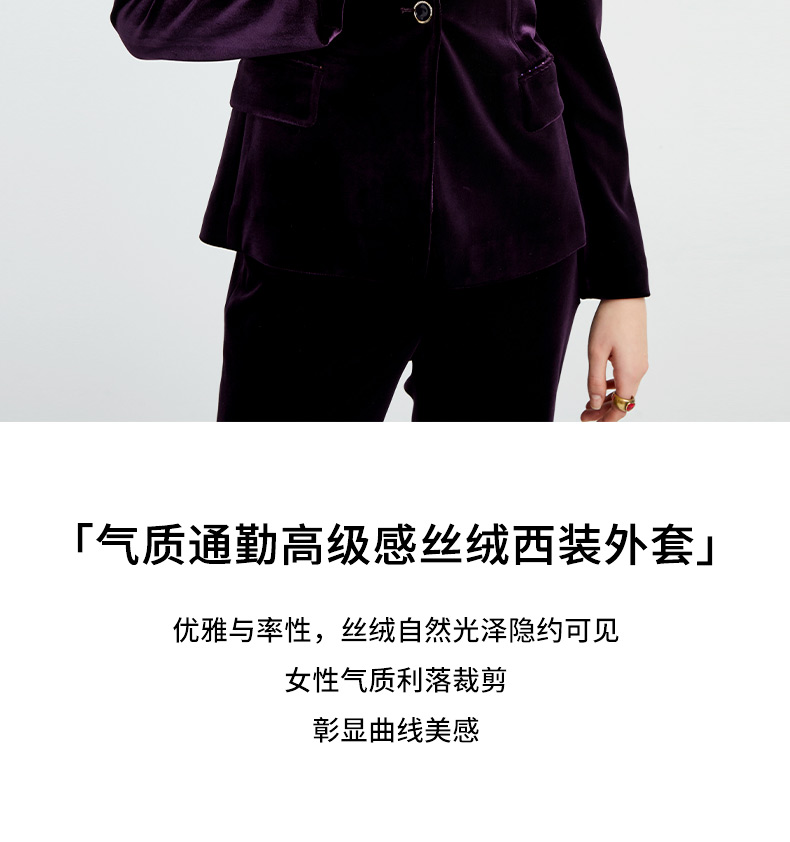 皮尔卡丹女装新款时尚摩登复古丝绒西装P4320U4992Z0