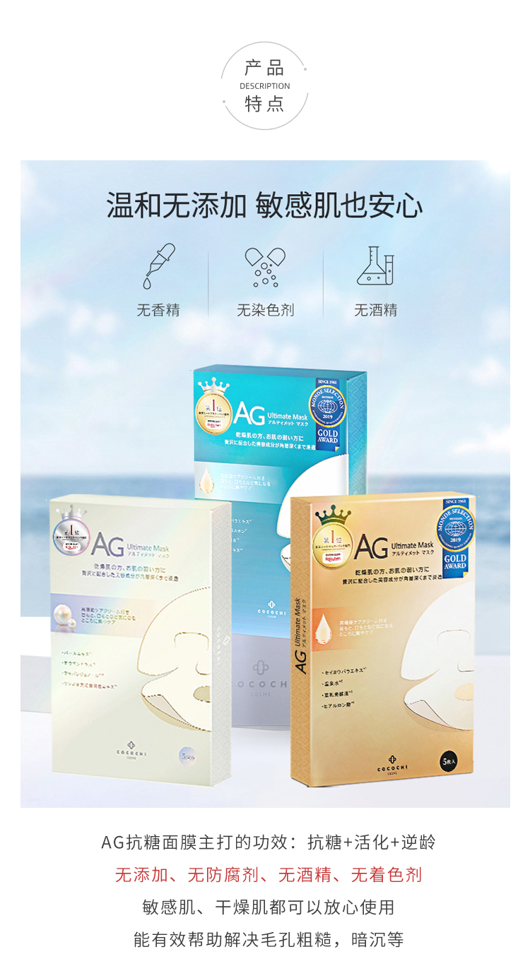 COCOCHICOSME蔻蔻琪AG抗糖面膜 补水保湿舒缓滋润 5片/盒