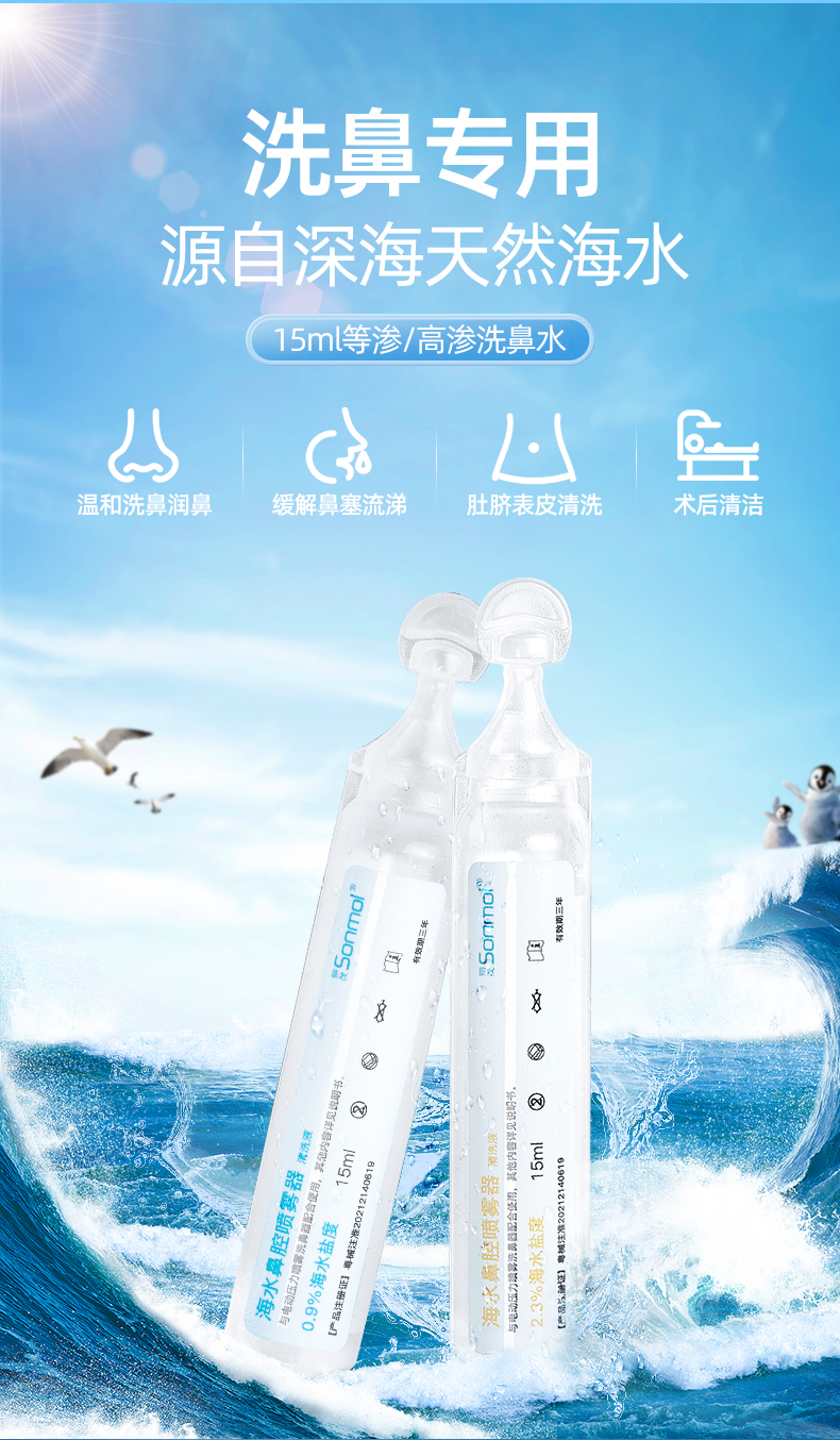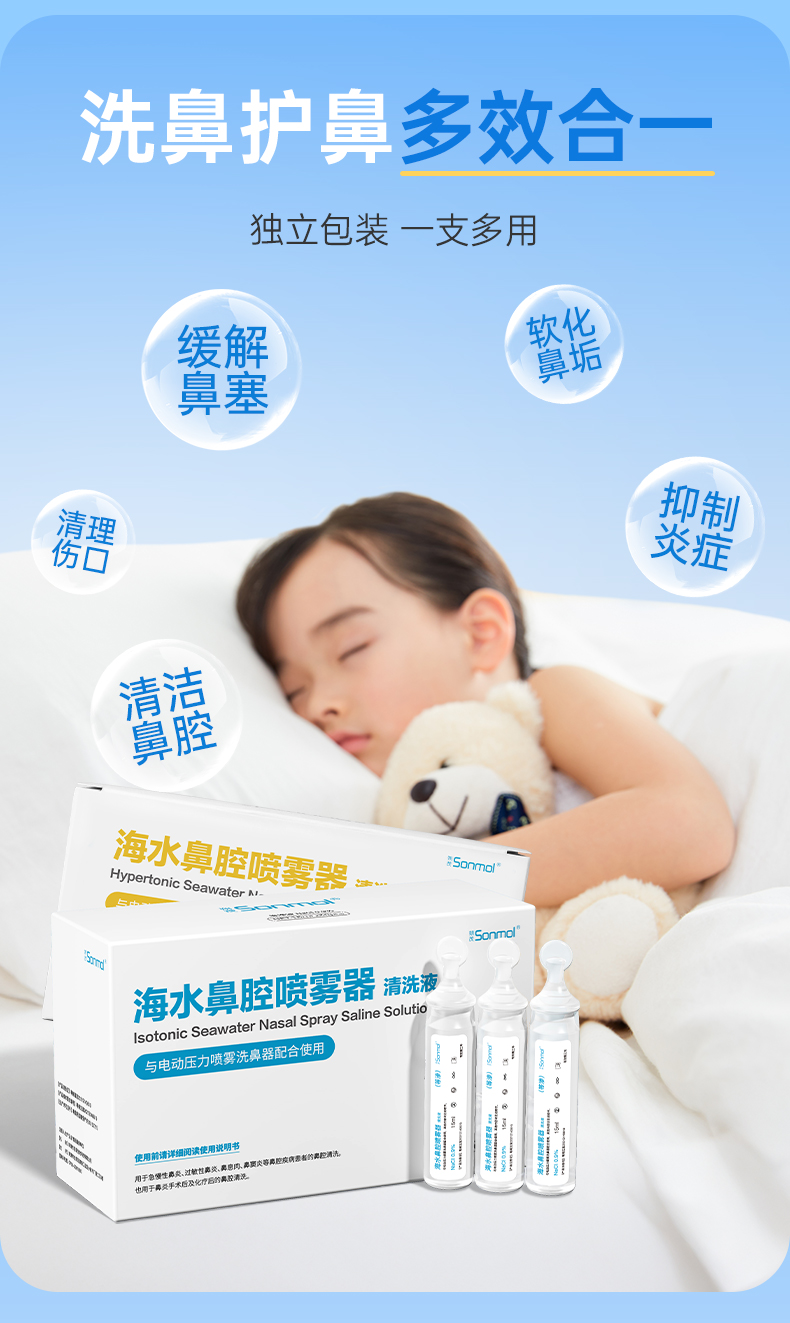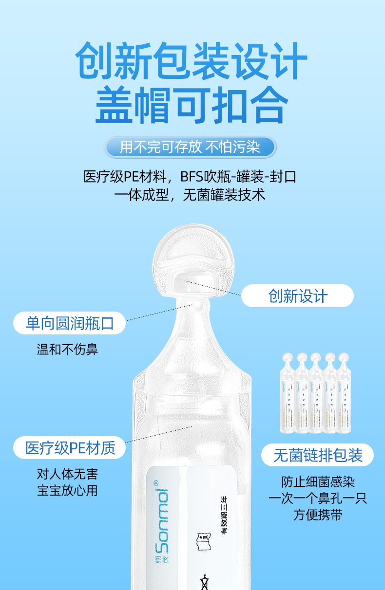 朔茂Sonmol 生理性海水鼻腔清洗液 15ml*30支 等渗 高渗 鼻炎婴幼儿童鼻腔冲洗盐水
