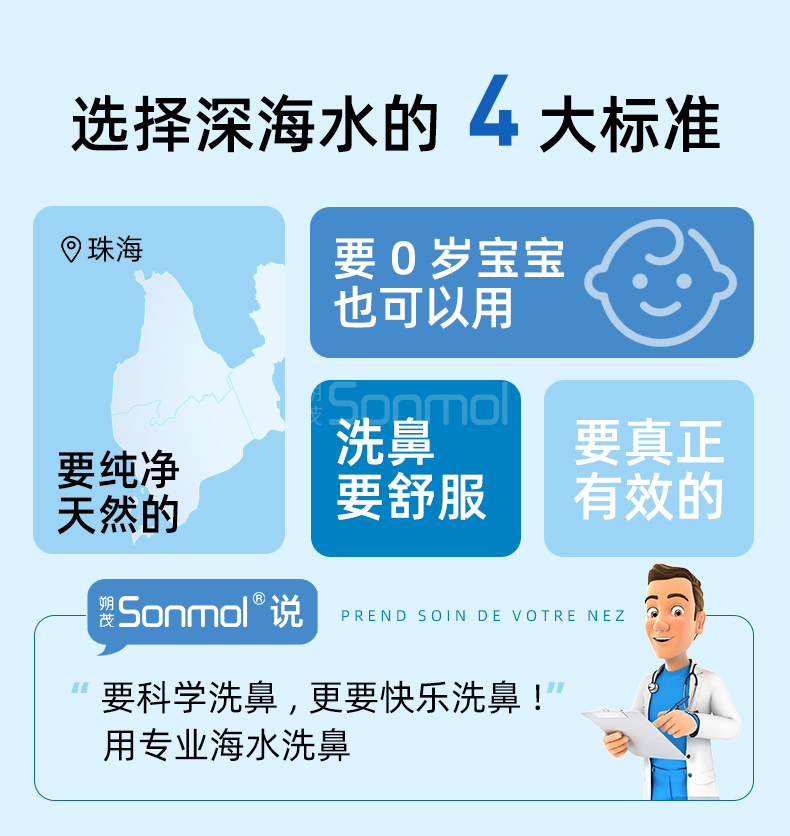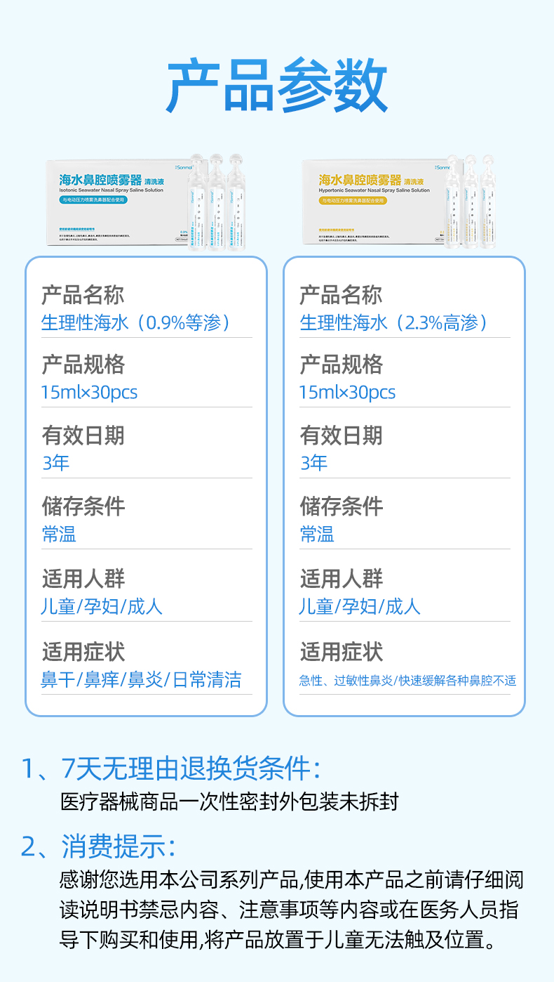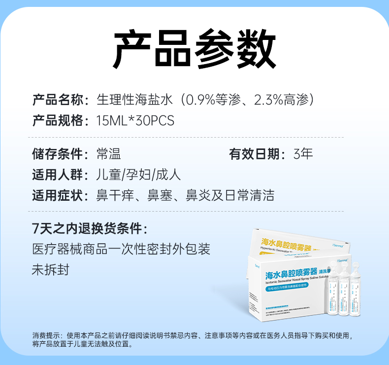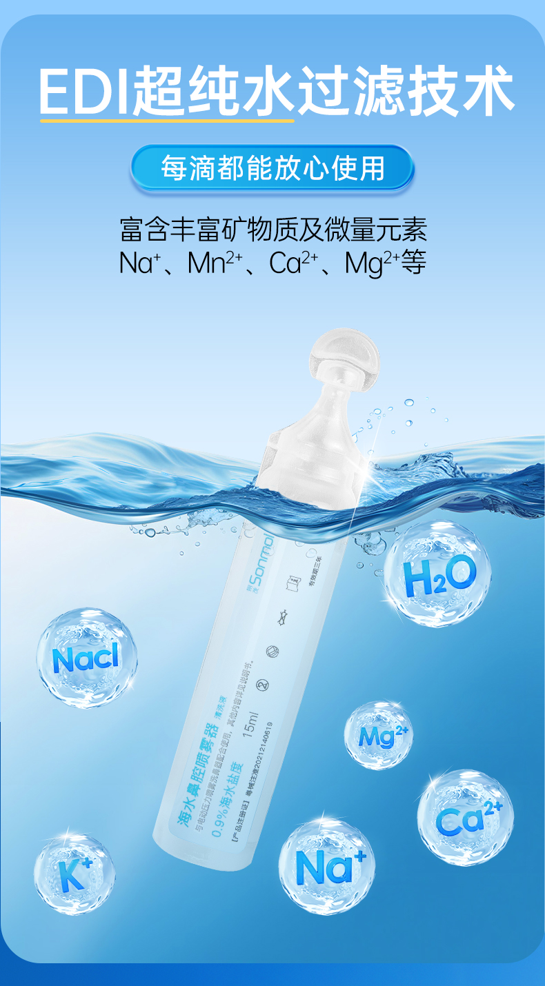 朔茂Sonmol 生理性海水鼻腔清洗液 15ml*30支 等渗 高渗 鼻炎婴幼儿童鼻腔冲洗盐水