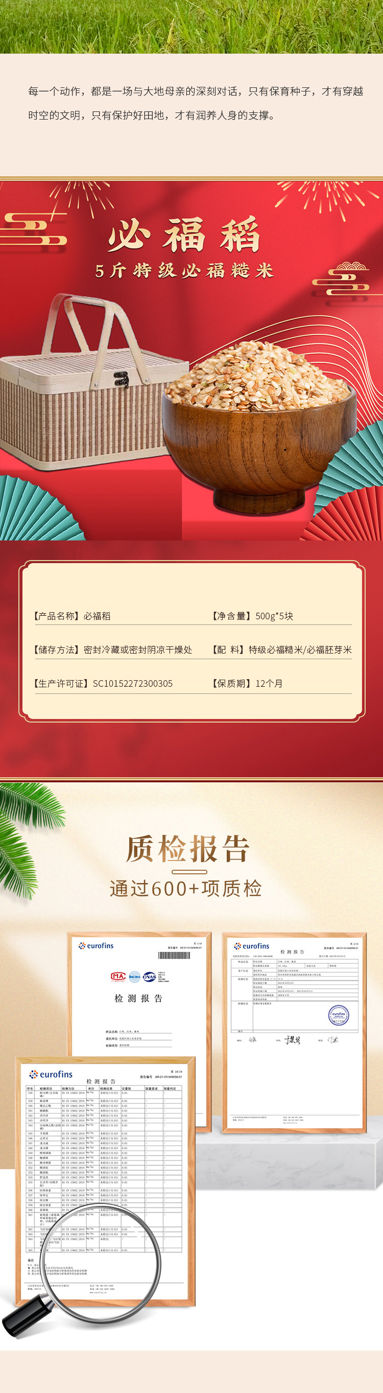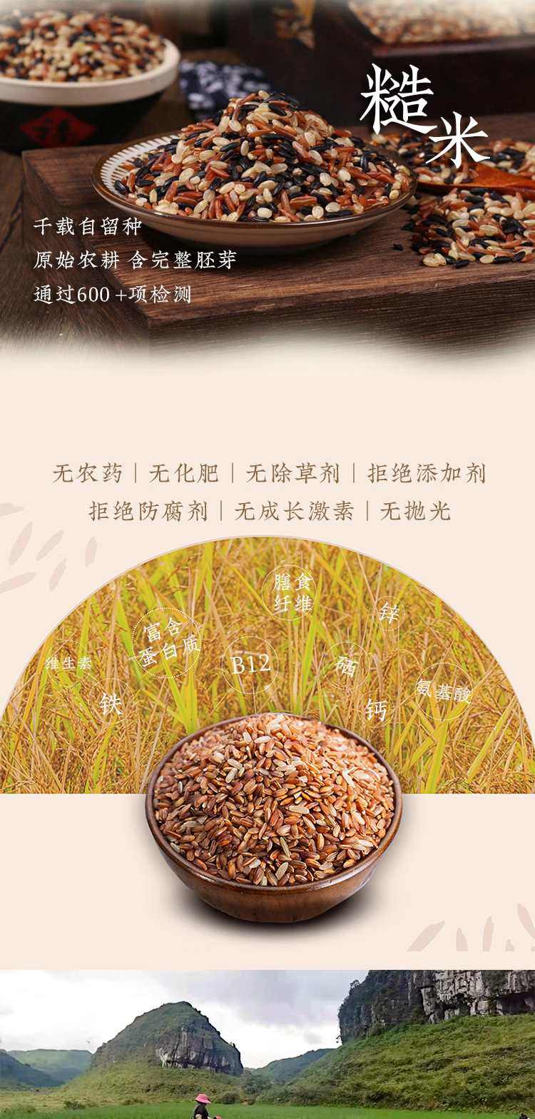 【凤品优选】贵州闲土农场 必福稻 500g*5/提 特级糙米/胚芽米 千载古稻 含胚芽651项农残未检出
