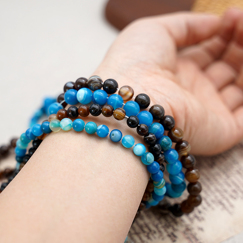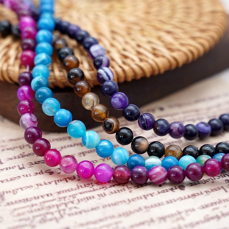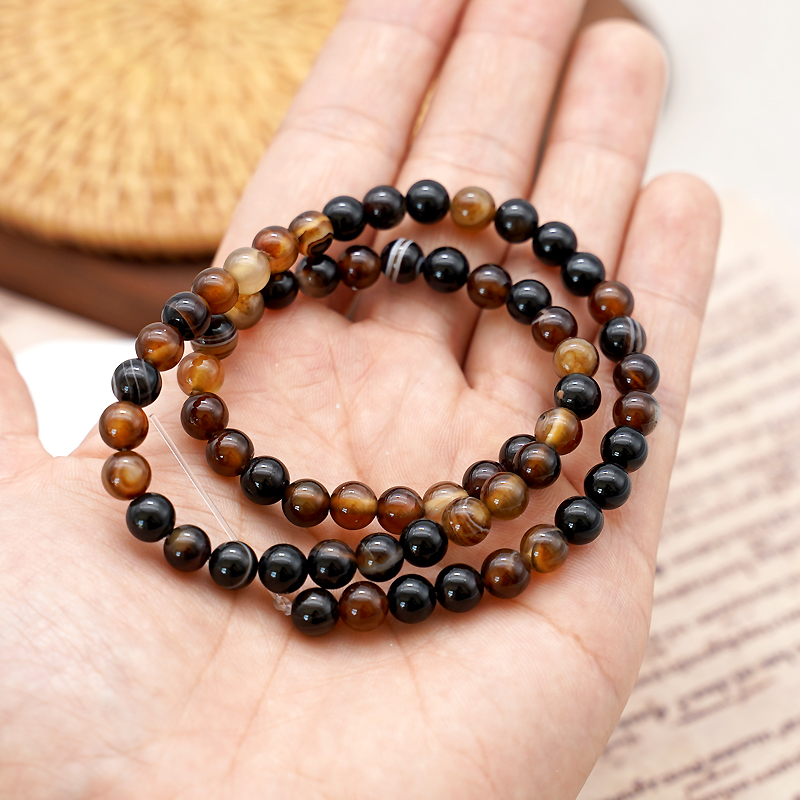 缠丝玛瑙8mm珠料意卡米诺手串念珠单颗珠子散珠半成品