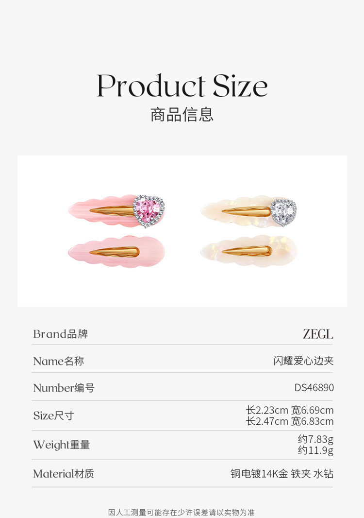 ZEGL爱心发夹女多巴胺后脑勺一字夹鸭嘴夹侧边边夹可爱发饰头饰品