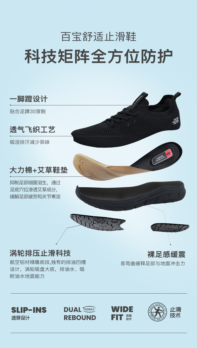 百宝男士休闲运动鞋走路鞋一脚蹬软弹透气防滑健步鞋夏季透气男鞋