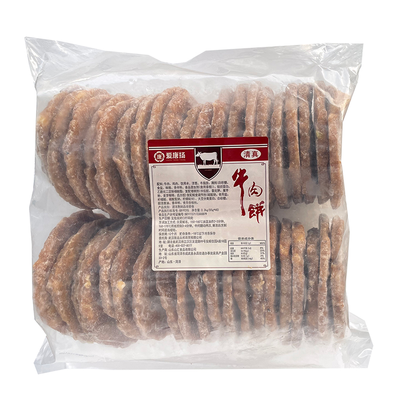爱唐扬牛肉饼(清真)55g*40个 汉堡肉饼商用冷冻熟制牛肉饼半成品牛排美式堡西餐(顺丰发货)