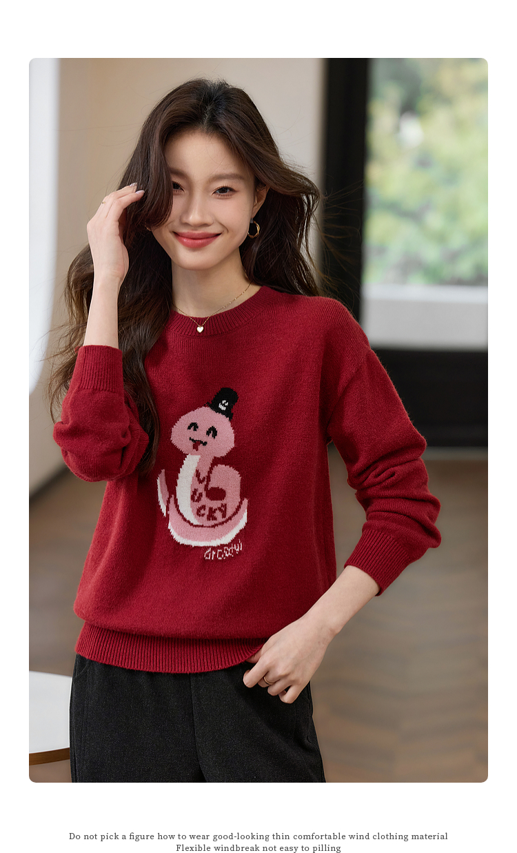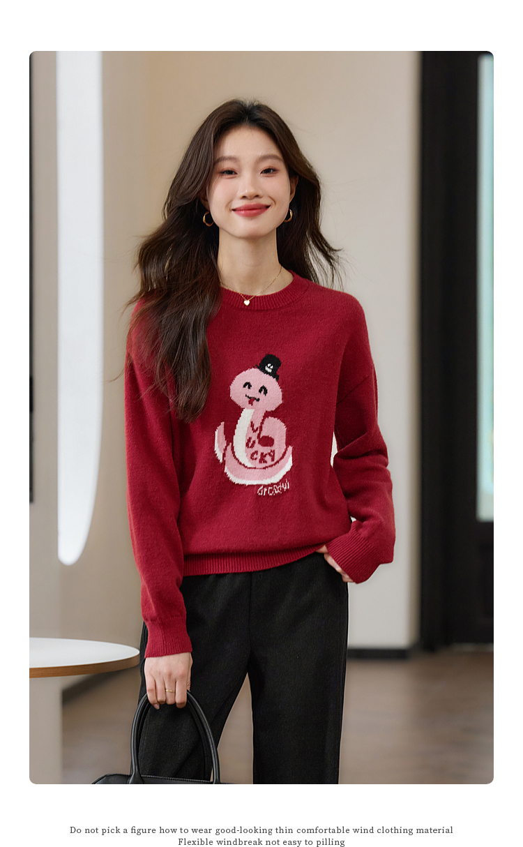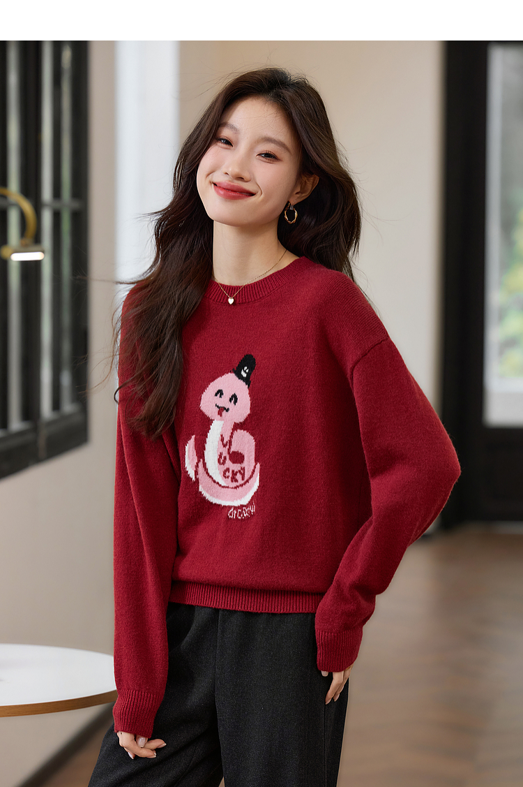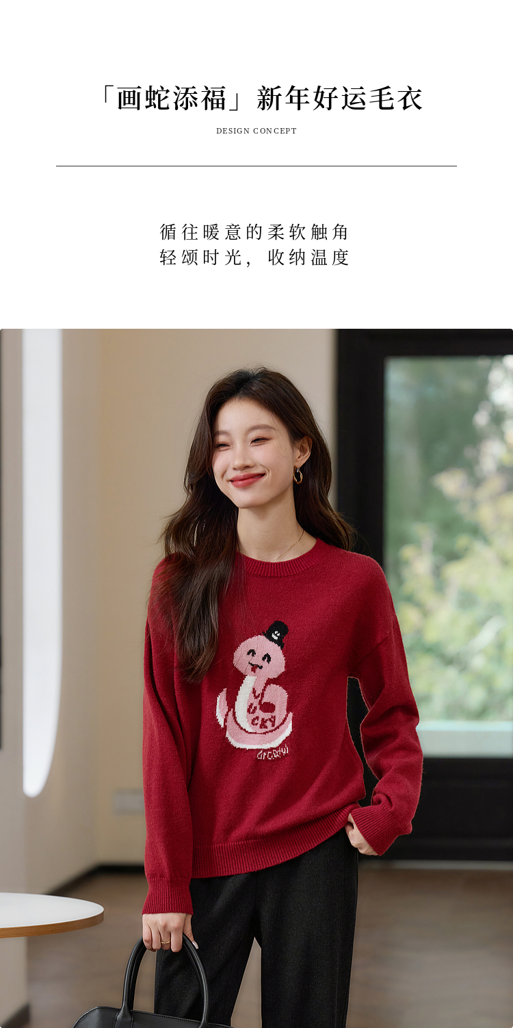 【年货节】熙世界2025蛇年本命年衣服红色毛衣女秋冬生肖图案新年针织打底衫