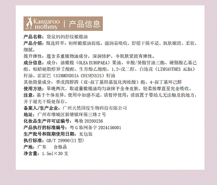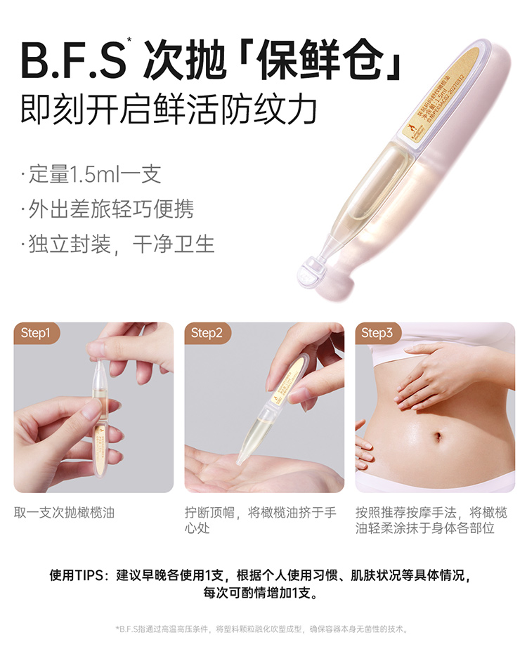 【防纹次抛橄榄油】防纹紧致滋养腹部 数据显示4周有效淡纹 舒缓干痒 质地轻盈快吸收 舒纹橄榄油(1.5mlx30支)