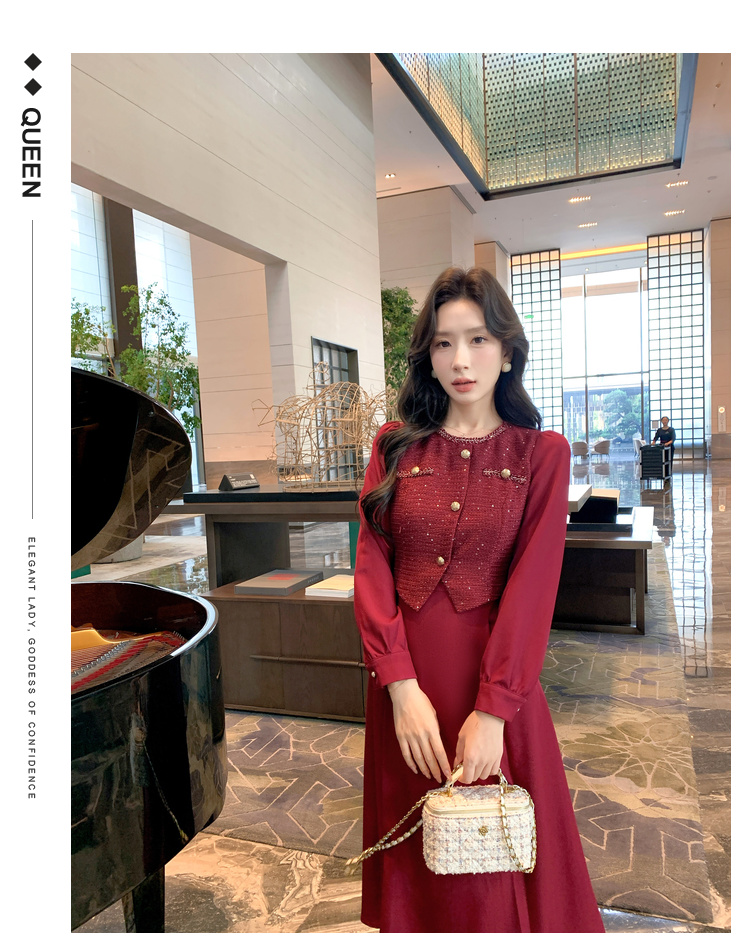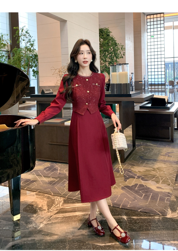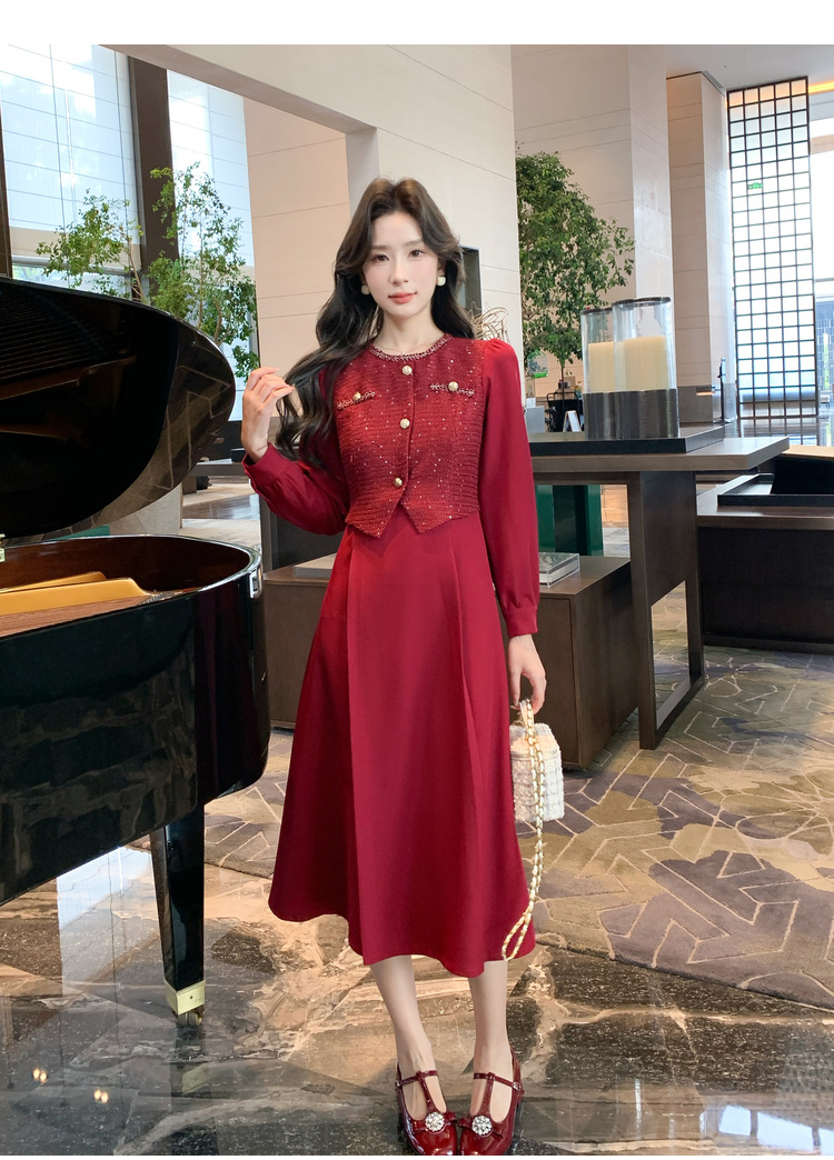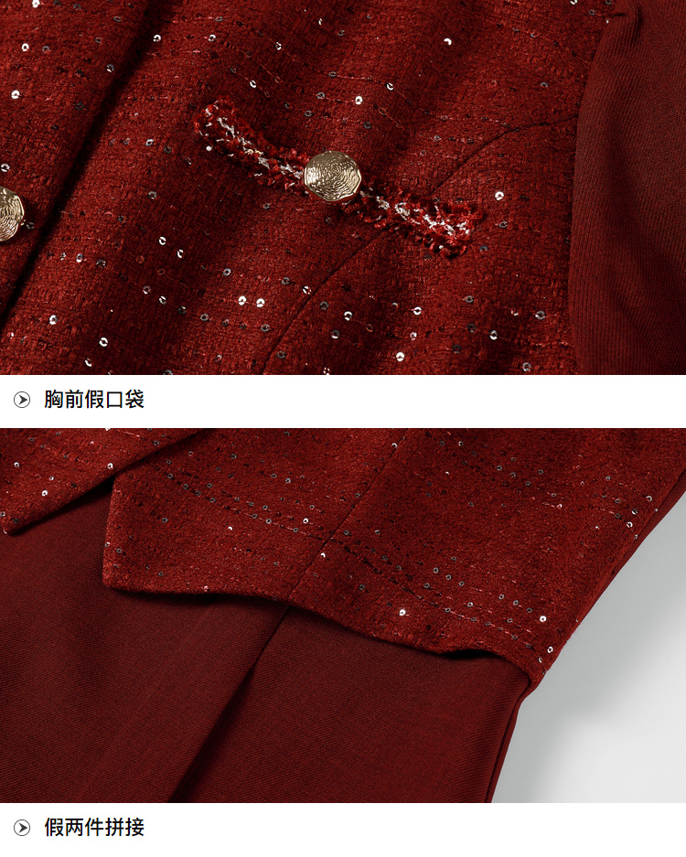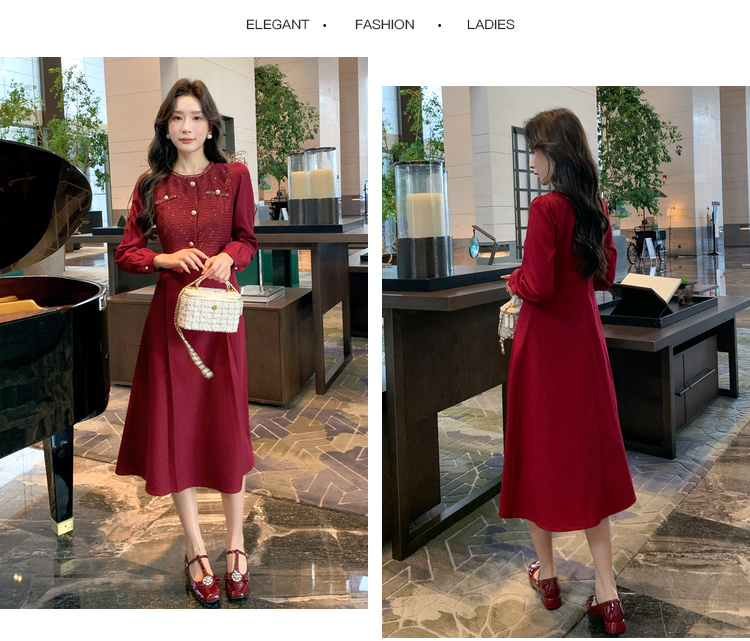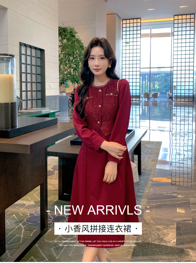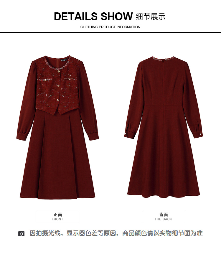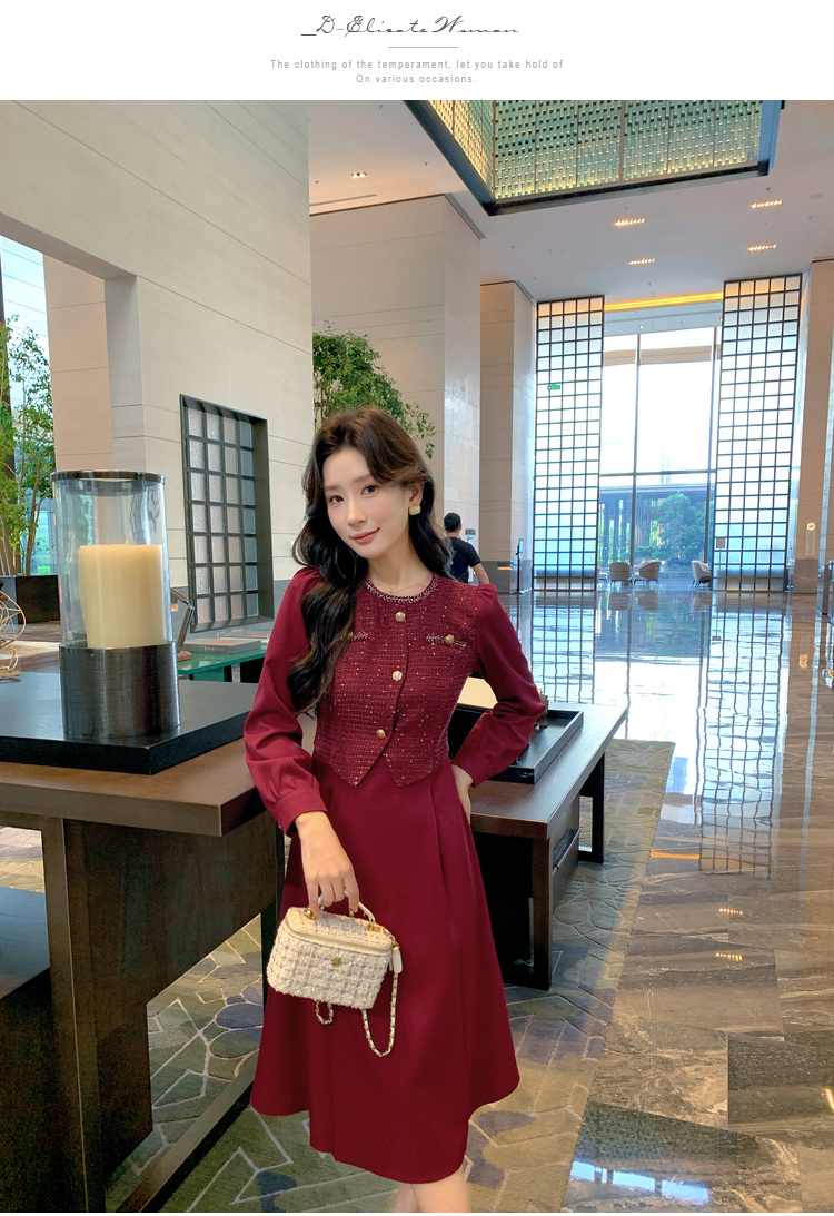 奢姿2024年秋季新款大码女装气质假两件裙子胖妹妹织带拼接连衣裙9943860365