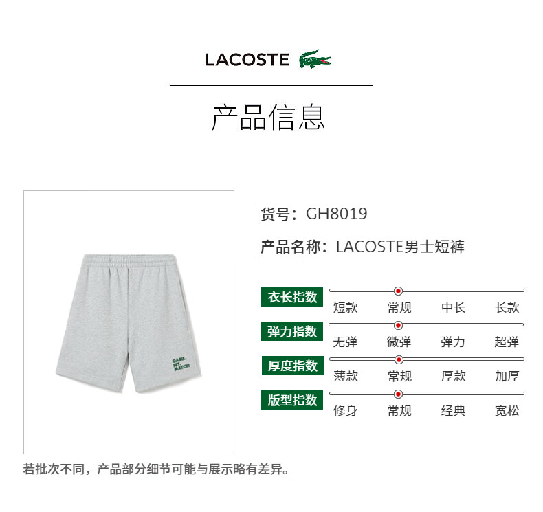 【海南专供价】Lacoste法国鳄鱼男装新款舒适运动短裤GH8019-98