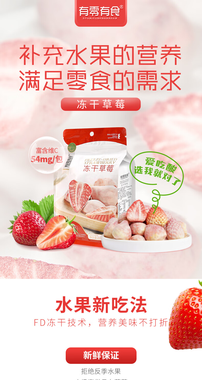 【分仓直发包邮】有零有食冻干草莓22g*3袋