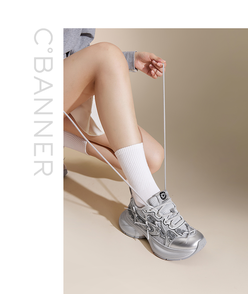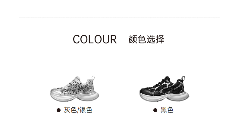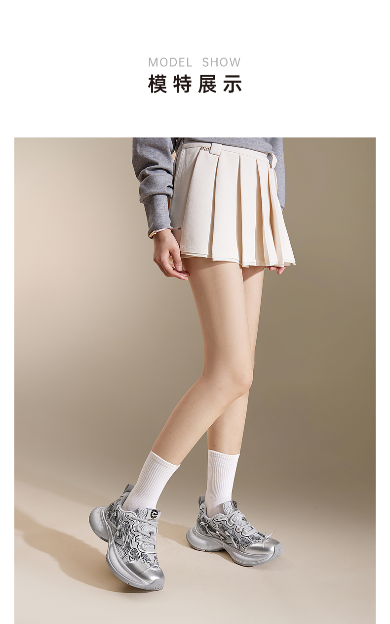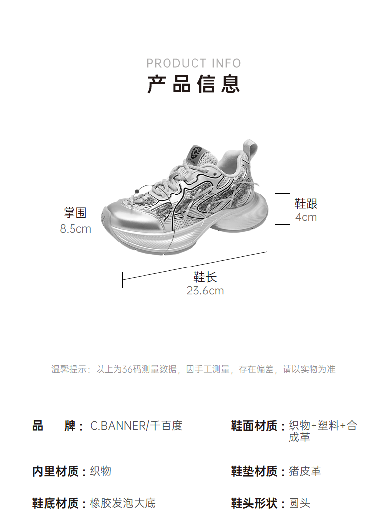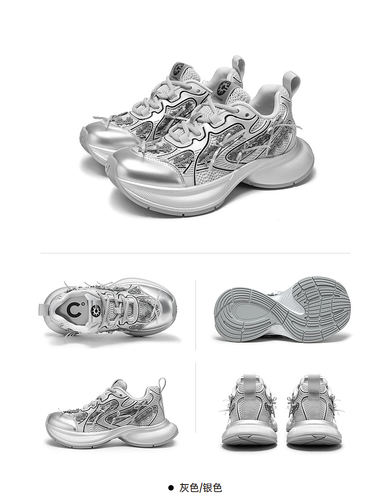 千百度银色网面时尚老爹鞋女款秋季运动休闲鞋A24430020
