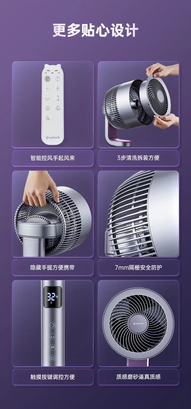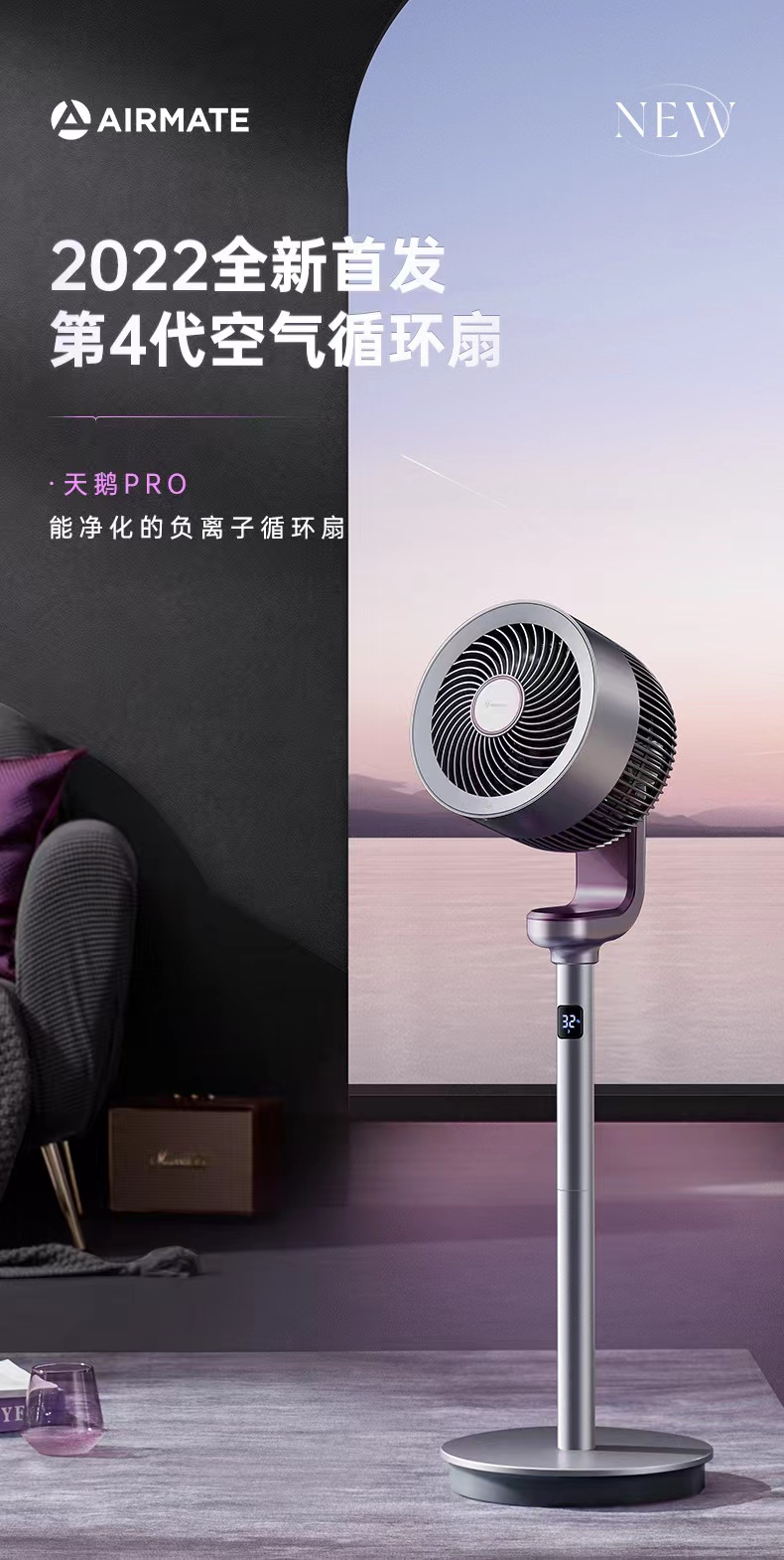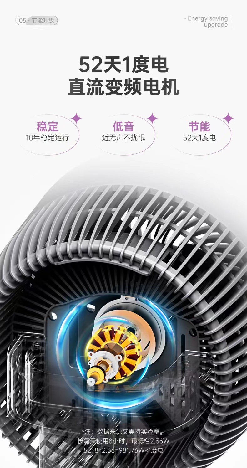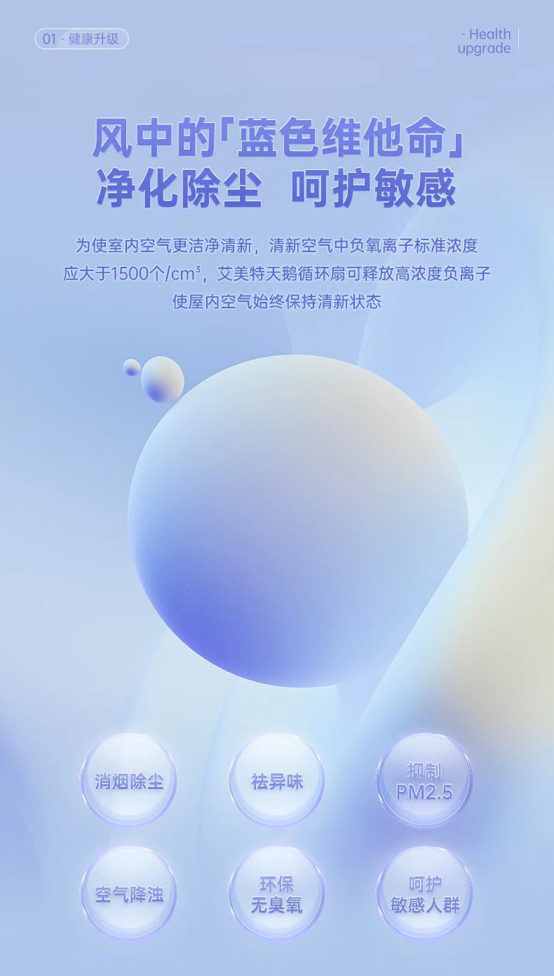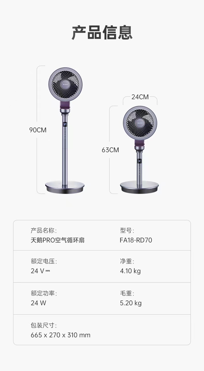 艾美特第4代空气净化循环扇RD70天鹅家用电风扇 BBJ