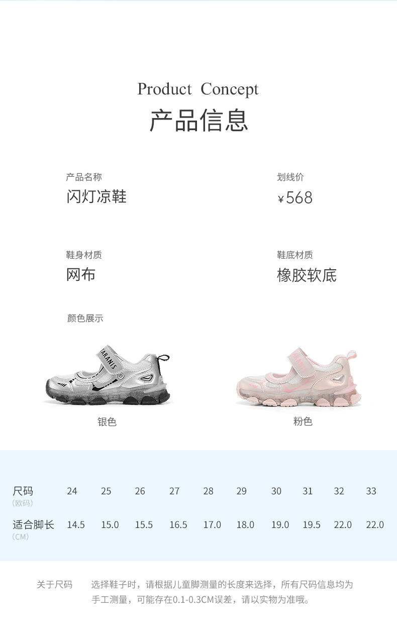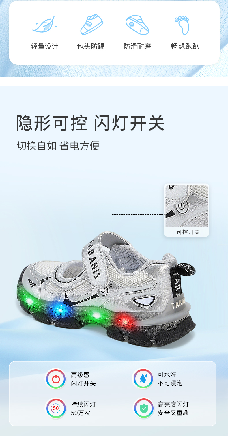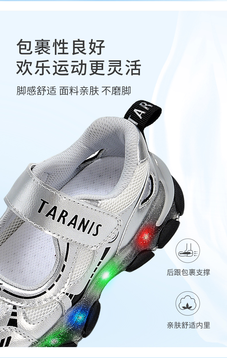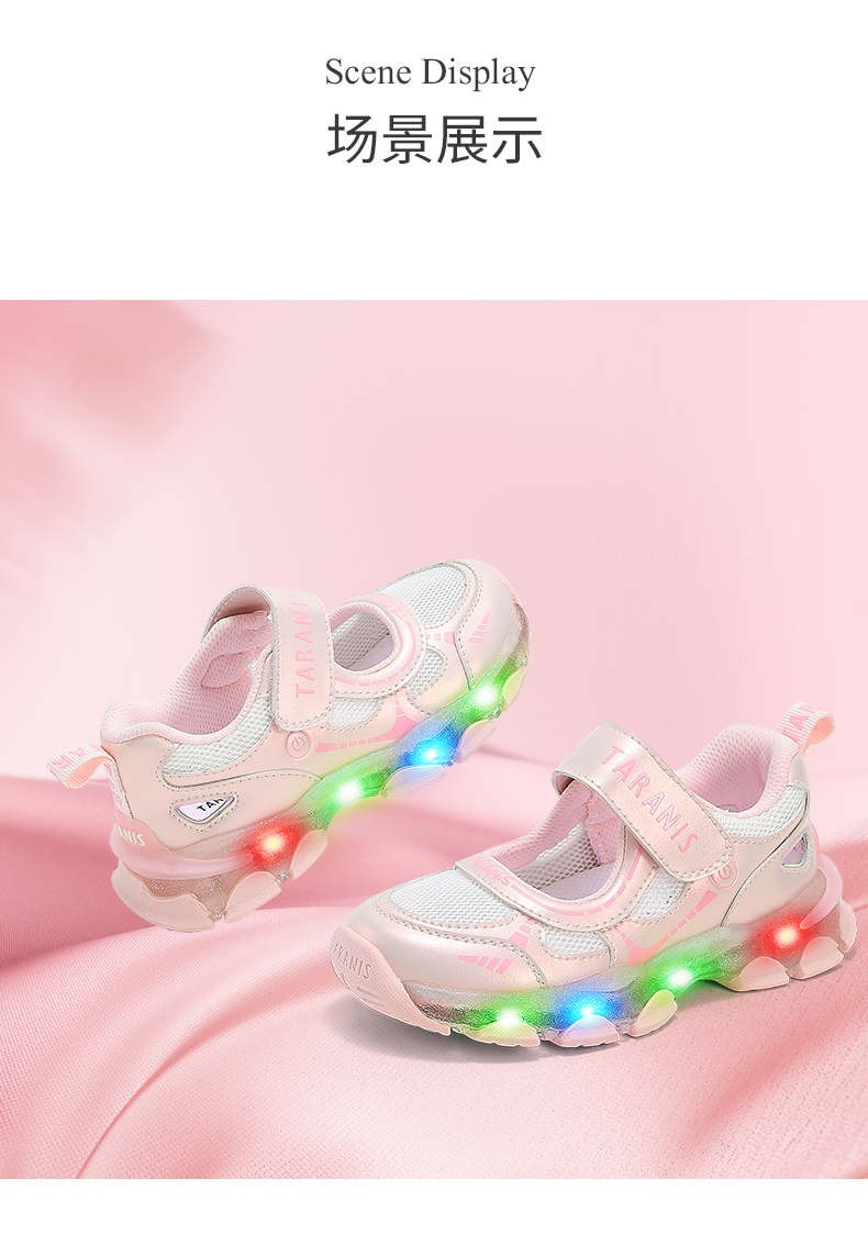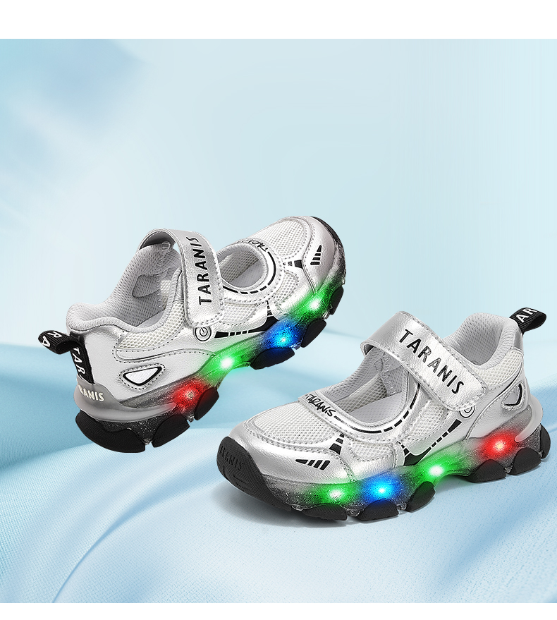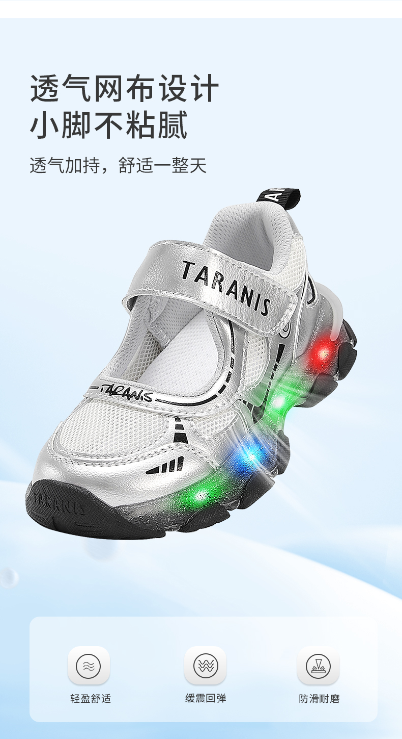 泰兰尼斯儿童闪灯凉鞋夏季女童可控开关发光鞋男透气网布亮灯童鞋 T01X5A7320
