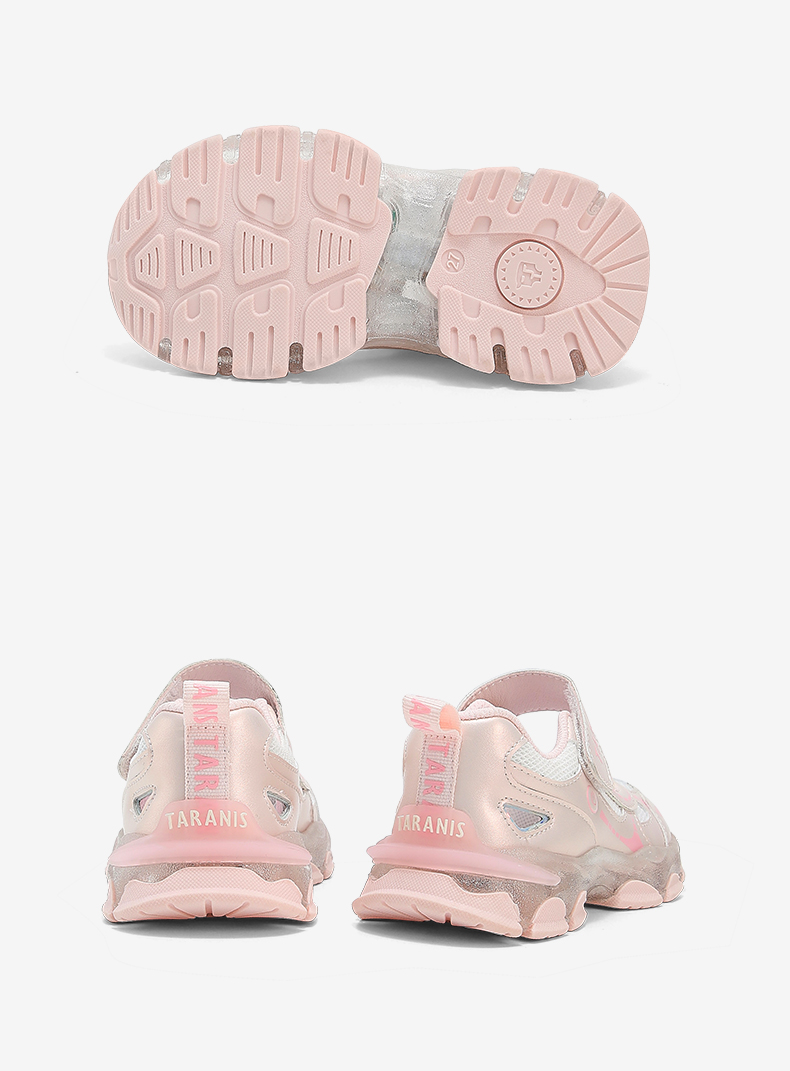 泰兰尼斯公主闪灯鞋发光水晶鞋果冻凉鞋缕空软底鞋女童粉色透明鞋 T12X5B7189