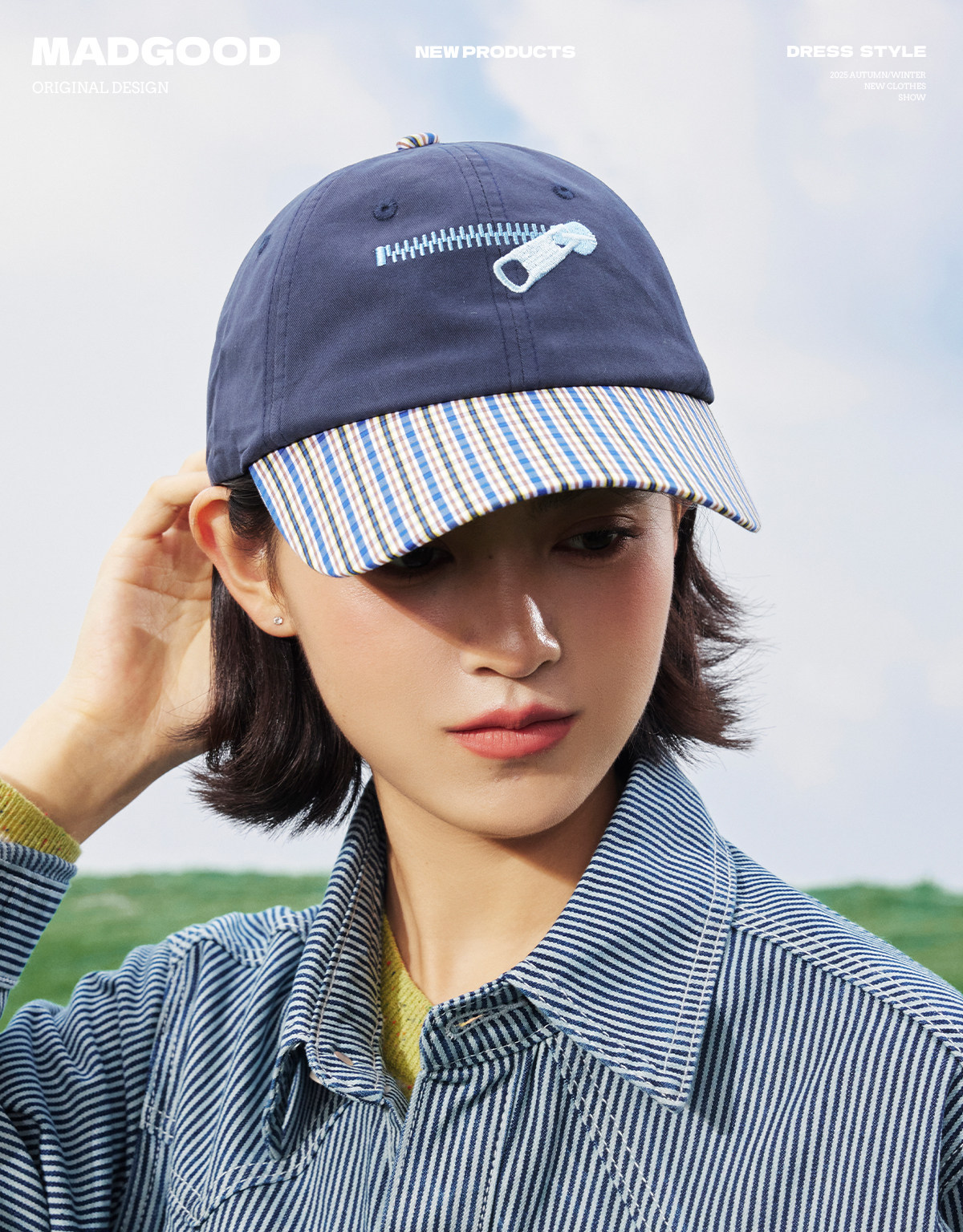 马得工地/MDGDPSMZ13650/拉链刺绣格纹拼接鸭舌帽