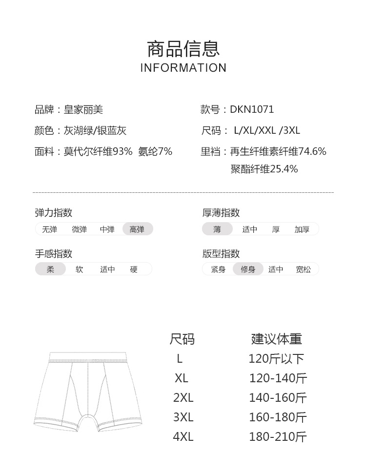 皇家丽美男士内裤平角四角裤莫代尔宽松舒适潮流个性DKN1071