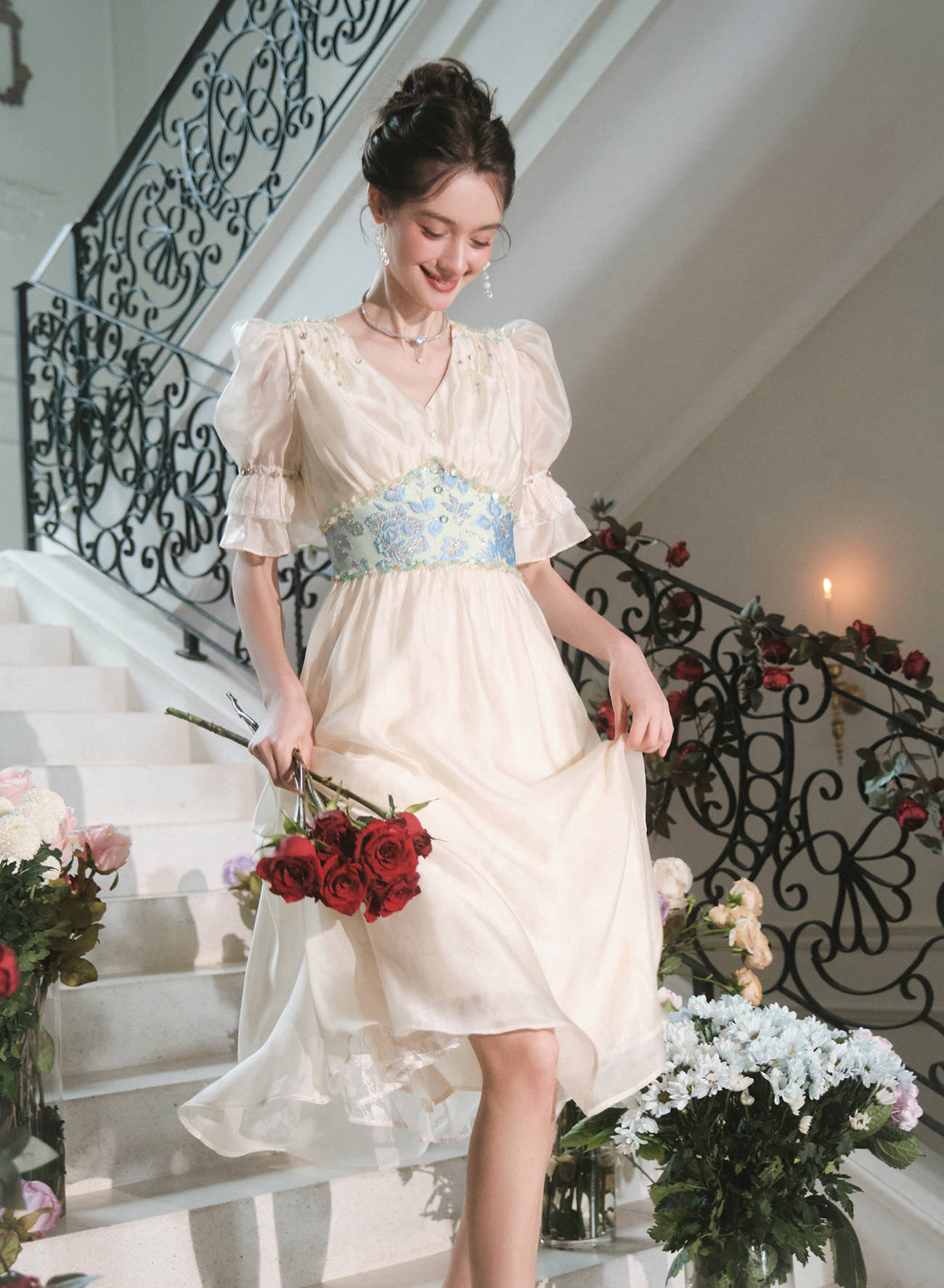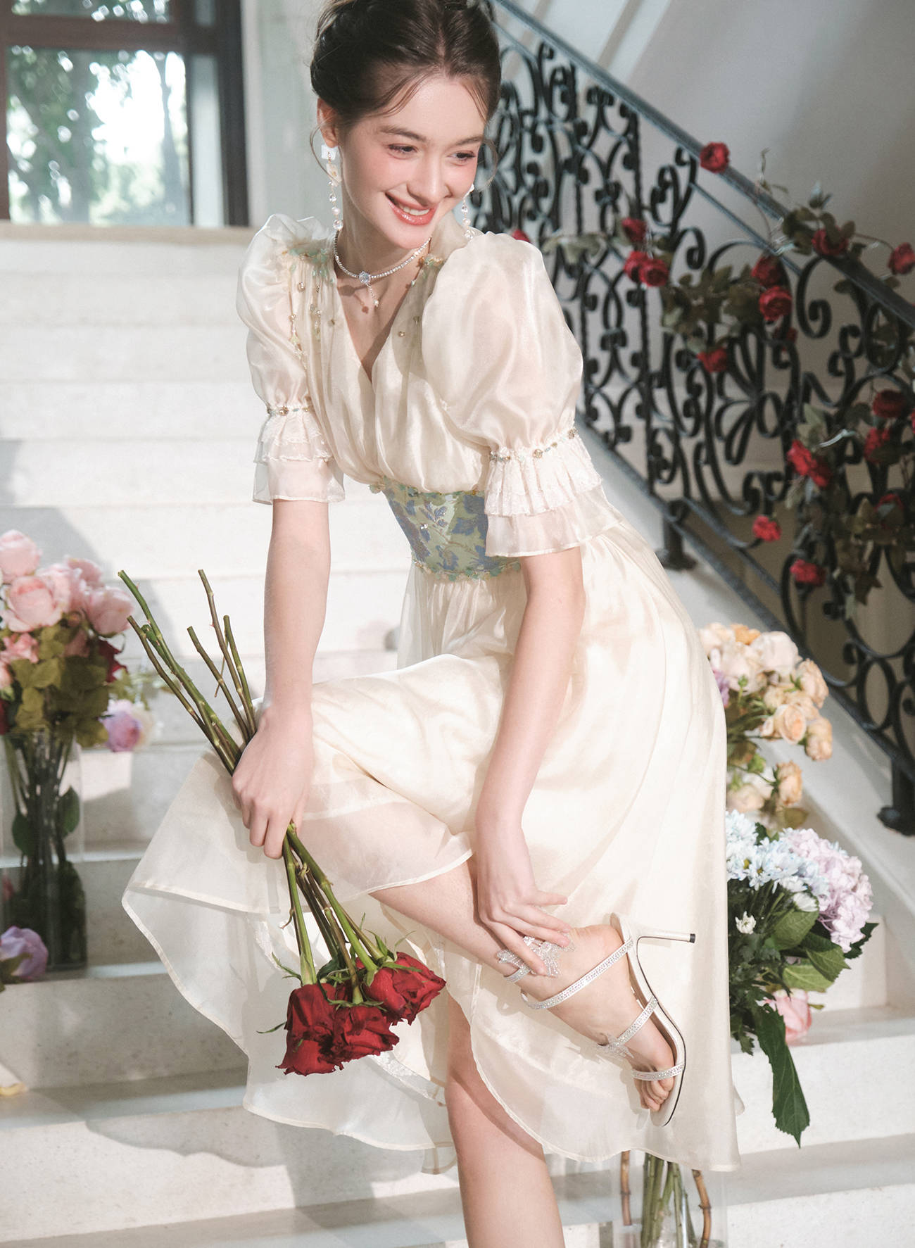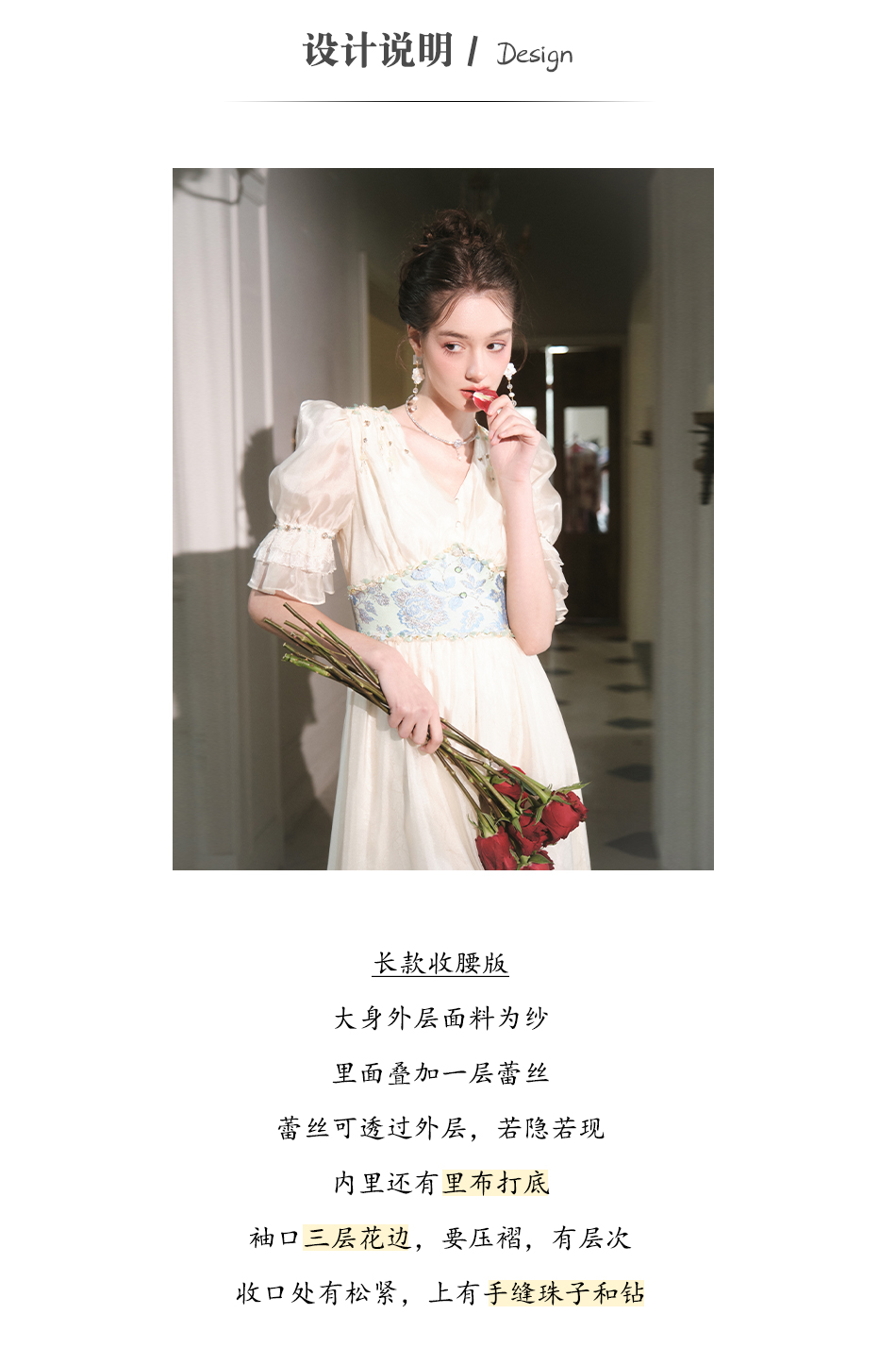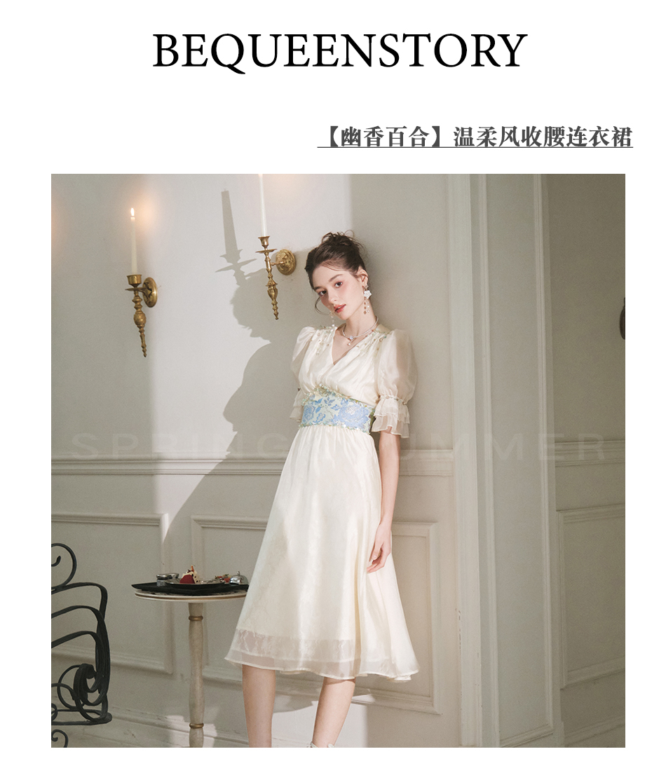 BeQueenStory【幽香百合】轻奢气质温柔风仙女收腰连衣裙2023春季新款